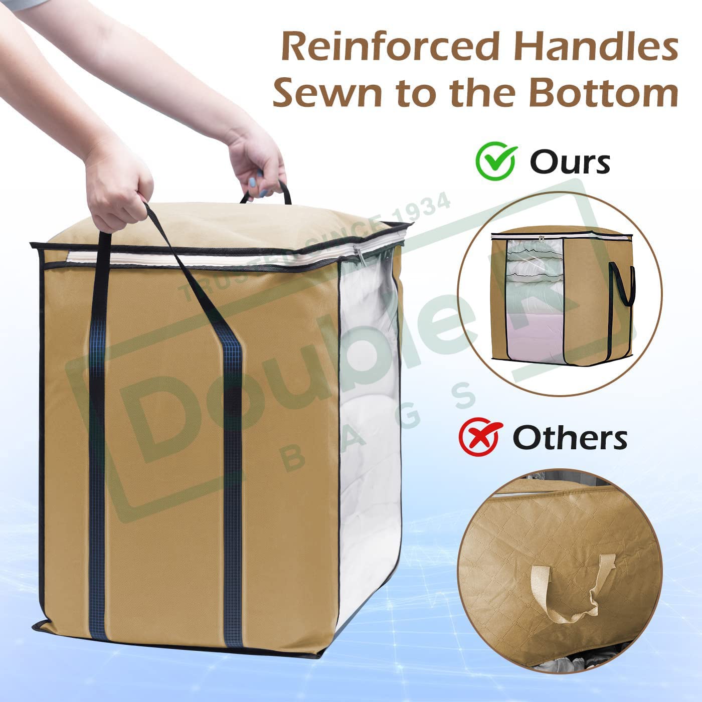 Sturdy Handles for Easy Lifting and Portability: Equipped with durable side handles, the bag makes transportation effortless—move it between rooms, or use it during travel, shifting, or seasonal cleanups without worrying about tearing.