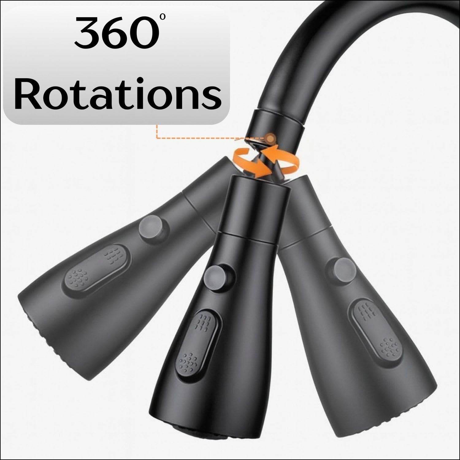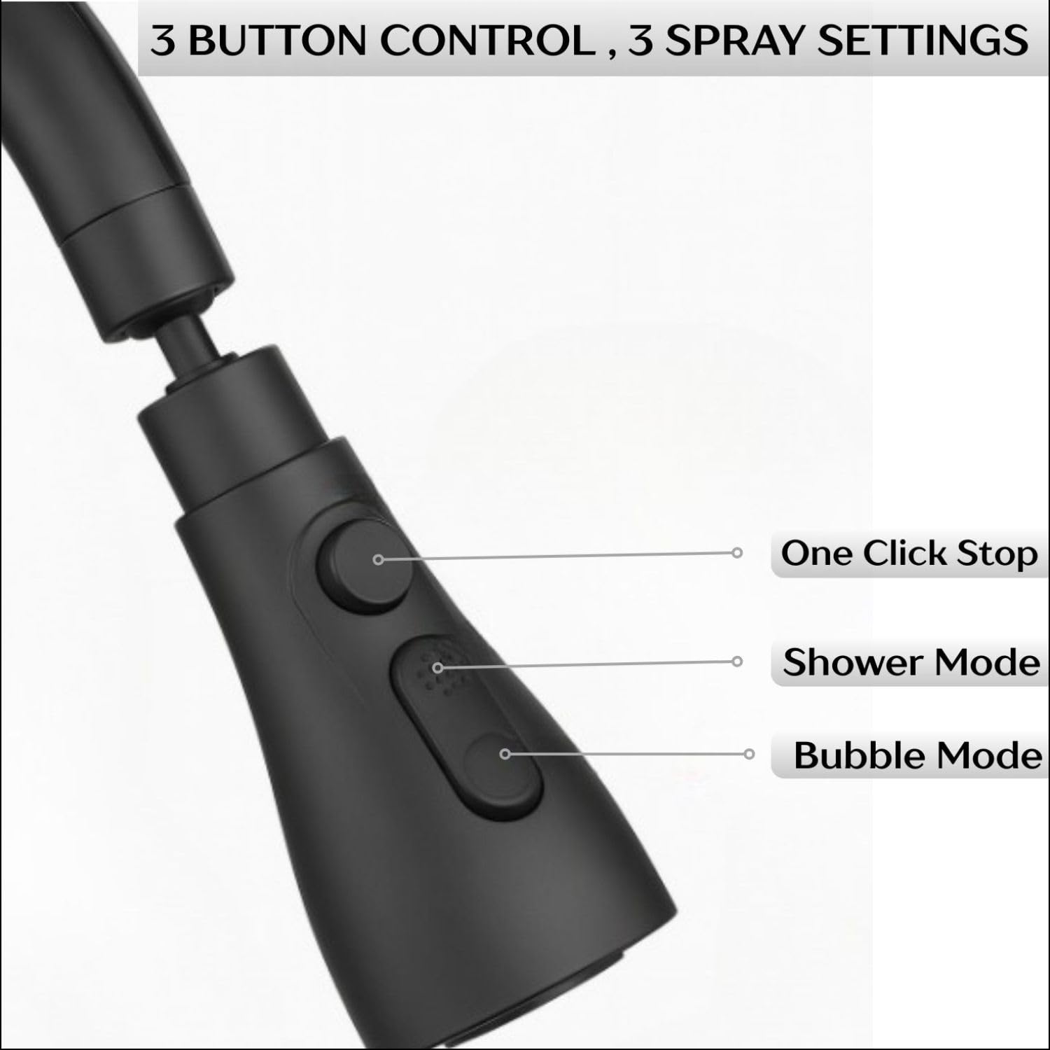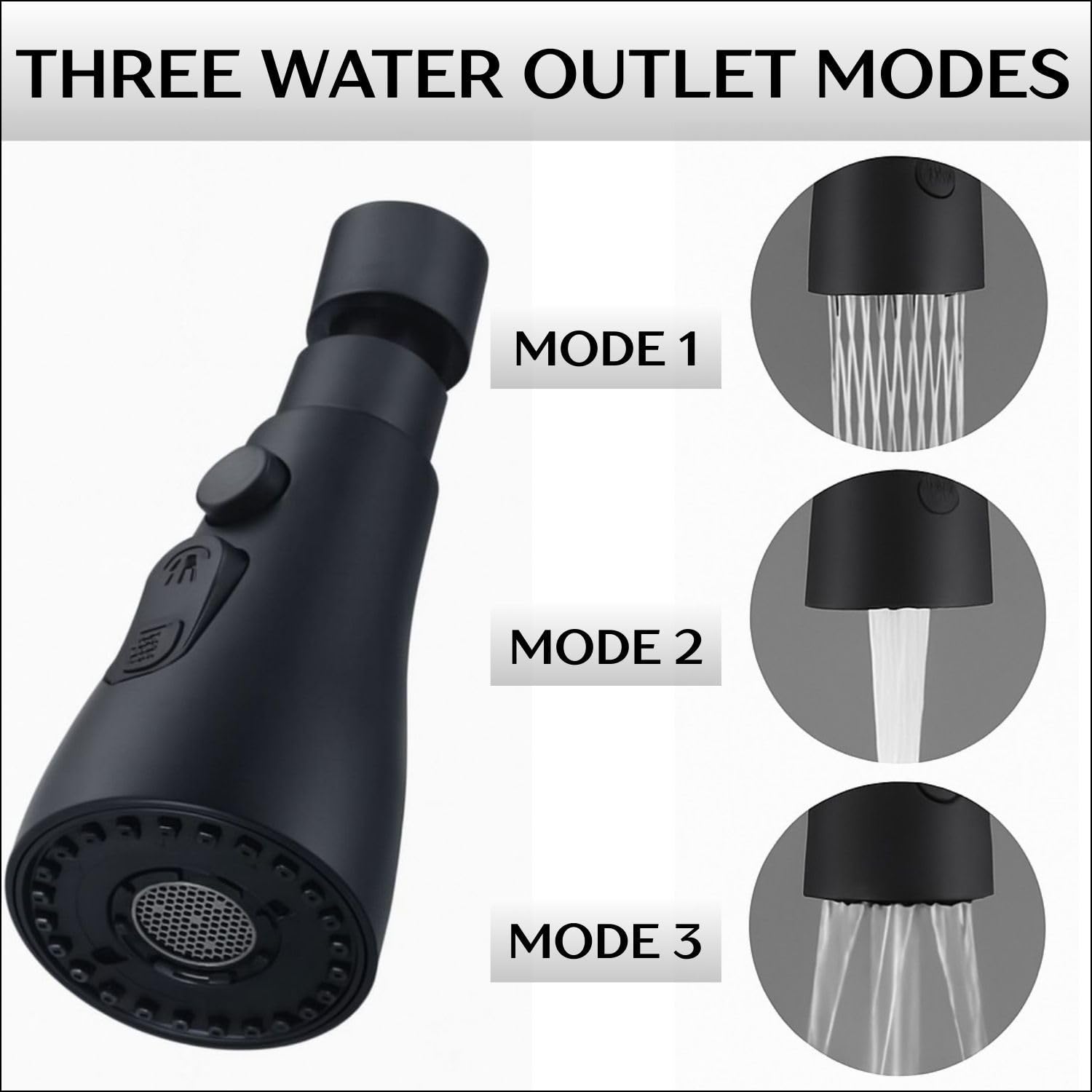 VERSATILE DESIGN: Mat Black faucet extender with flexible extension and 3-mode spray head for enhanced sink coverage and functionality
