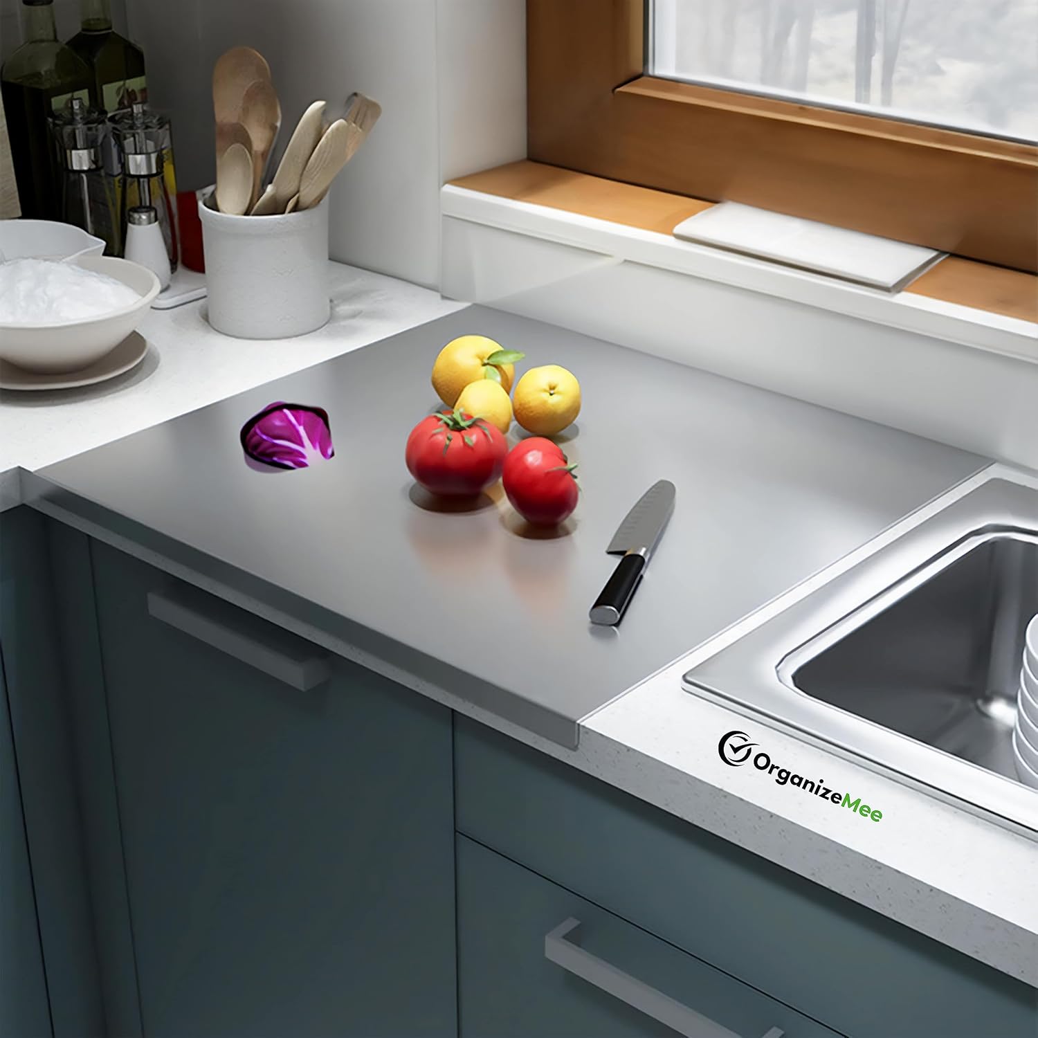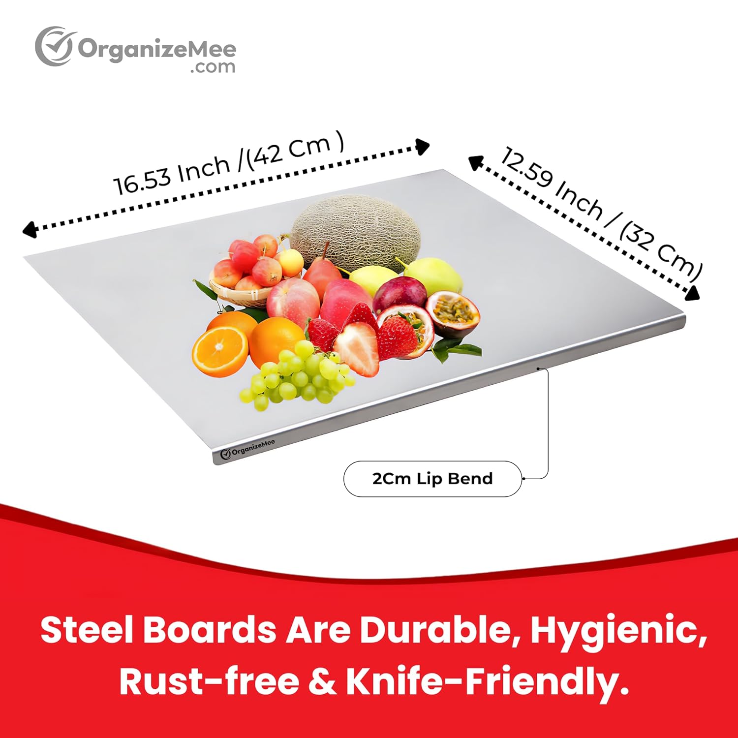 OrganizeMee Stainless Steel Worktop Platform (42 cm x 32 CM) Kitchen Cutting Board Board for Vegetables Fruits Healthy Safe Durable, Countertop (Platform Medium)