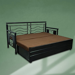 Material: Primary Material – Wrought Iron, Upholstery Material – Foam, Cushion Color : Brown, Style – Sofa Cum Bed | Made of Powder Coated Mild Wrought Iron | Cushion Foam 4 inch and 2 inch