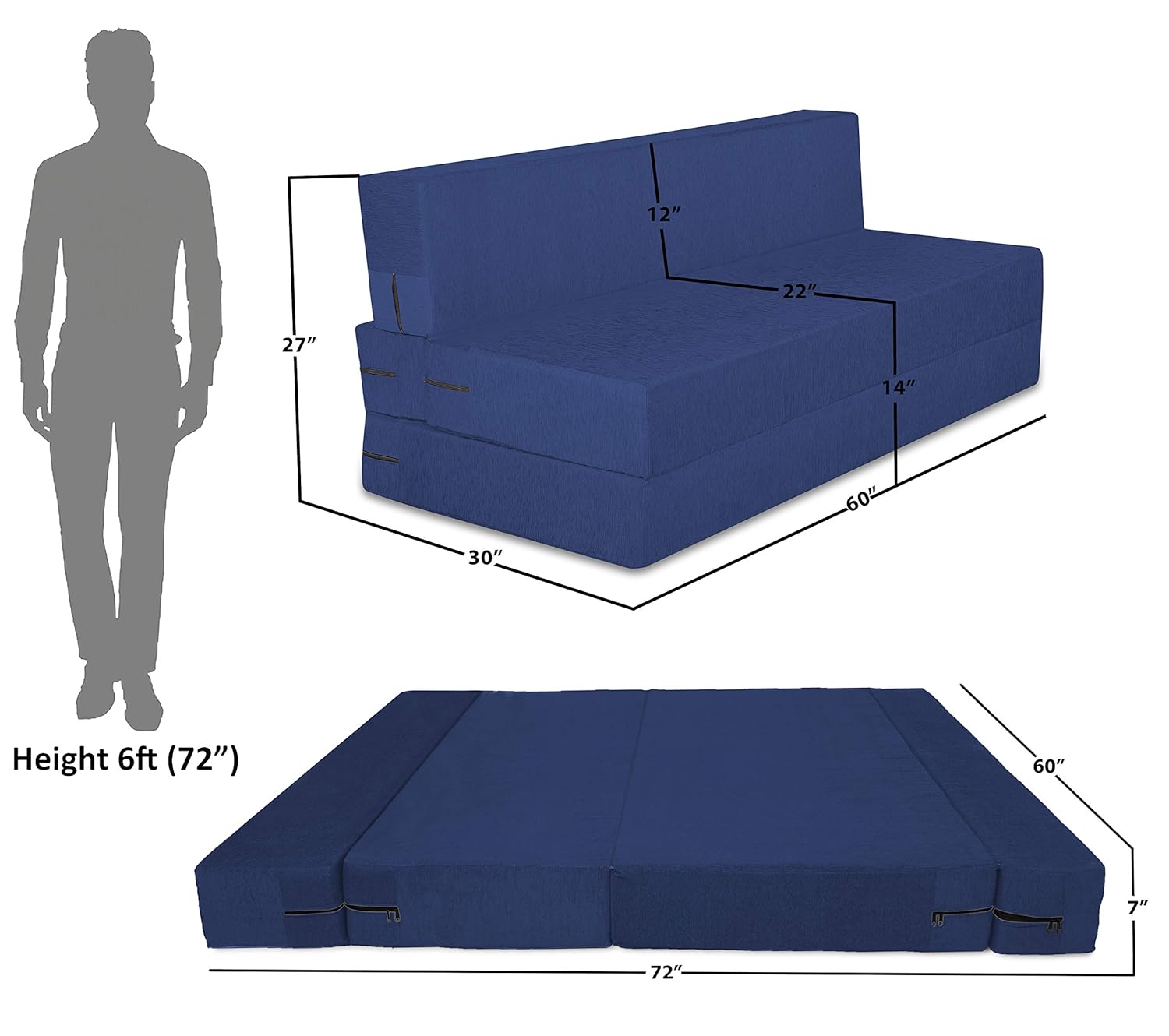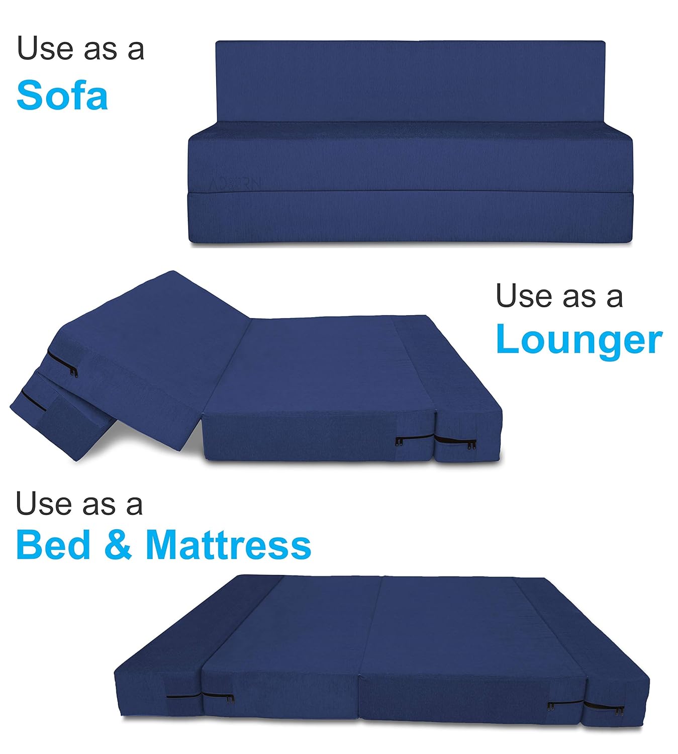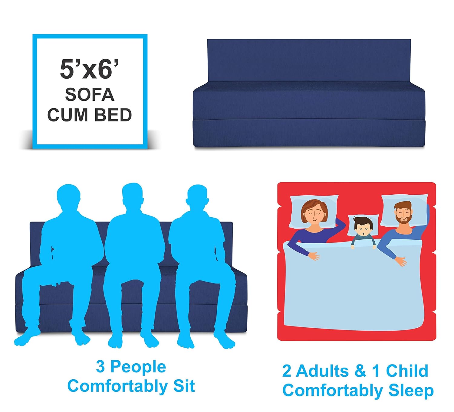 Adorn India Easy Treno 3 Seater Sofa Bed Sit & Sleep Perfect for Guest, Colour Blue, 5’x6′