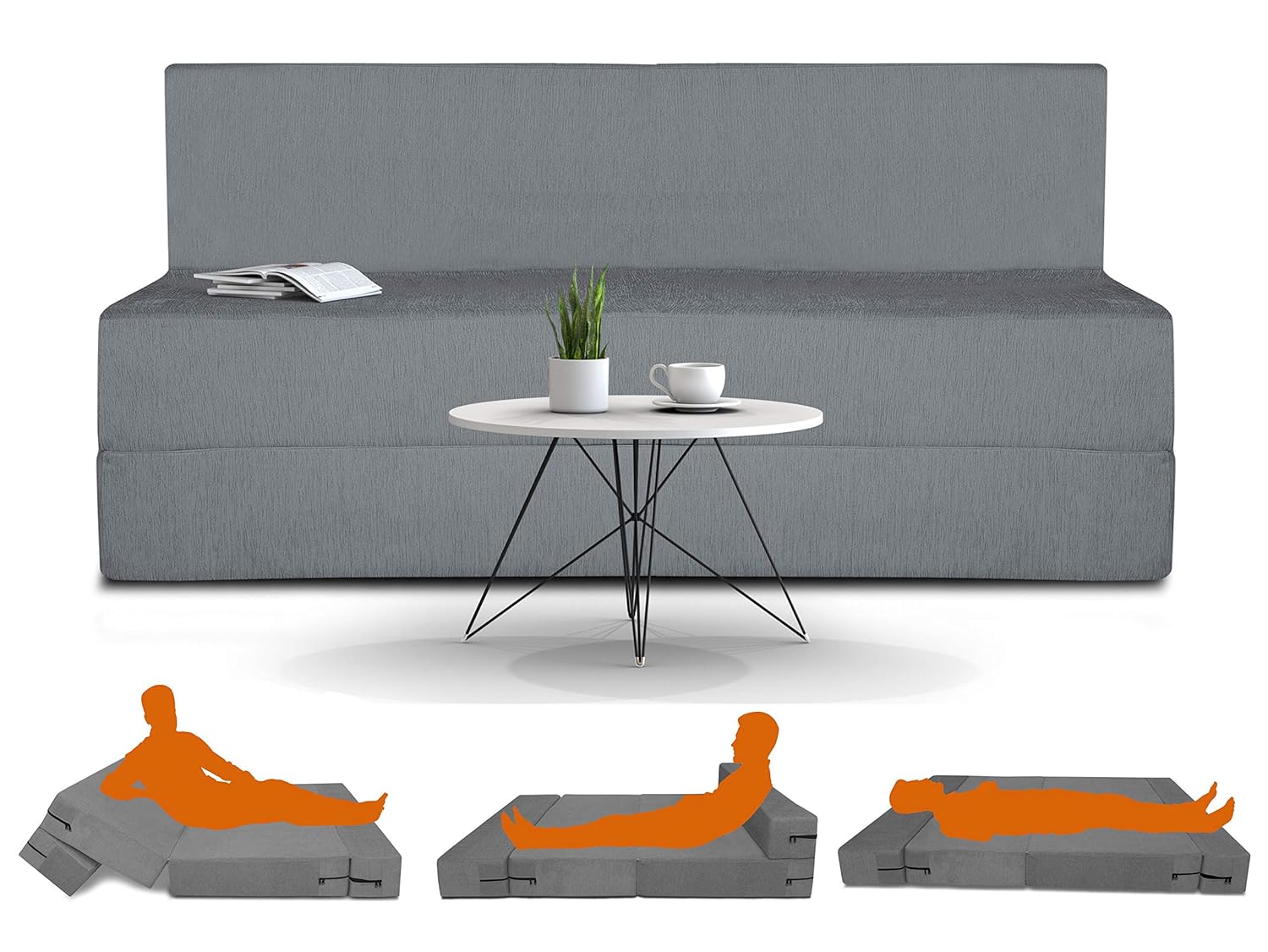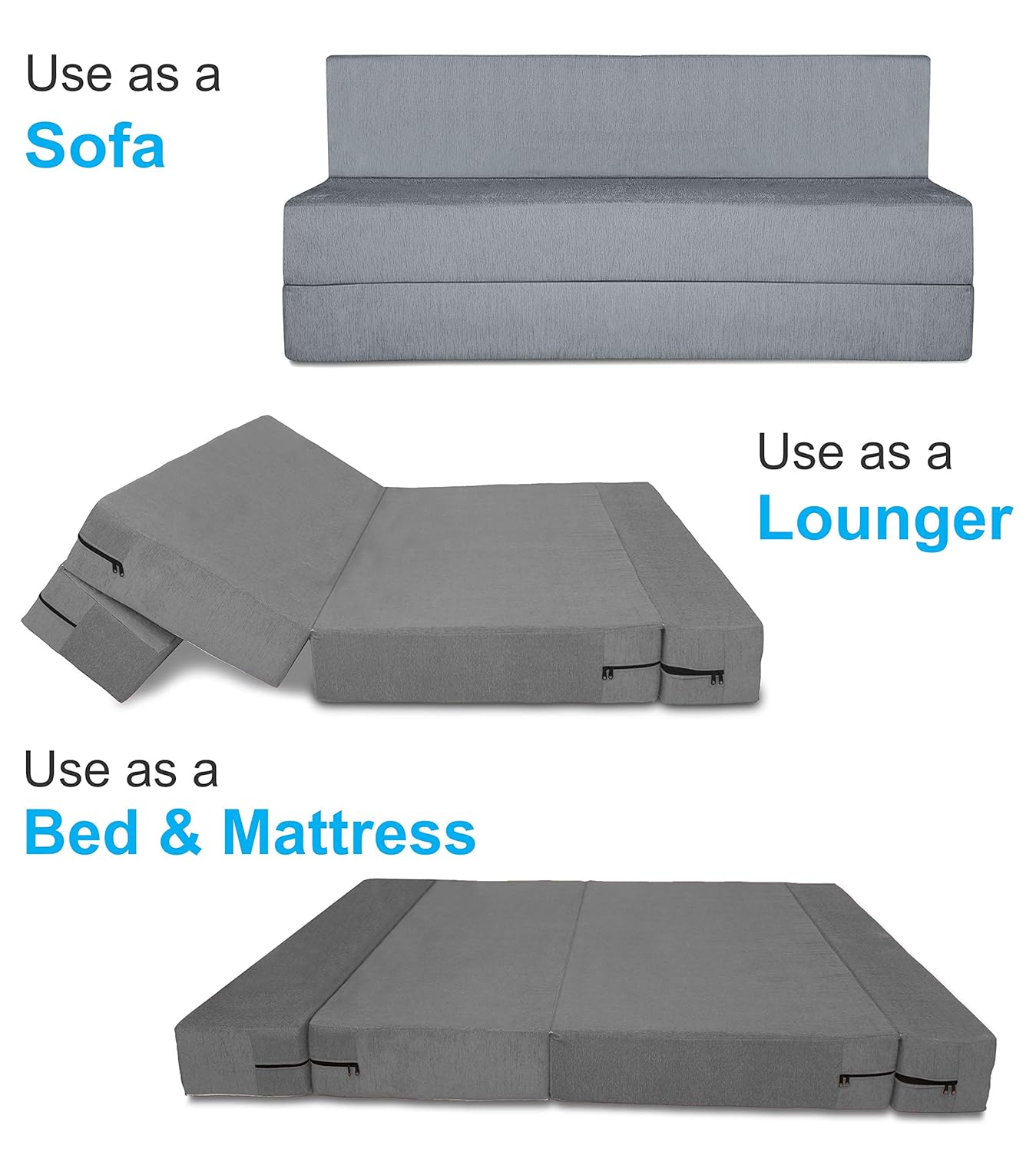 A great solution for managing space, the unit functions both as a sofa and a bed.The sturdy inventive concept folds the sofa into a bed instantly with three different types of relaxing concept, without the hassle of constant assembly and disassembly. You can use this as extra bed for unexpected guests and Bachelors this is your holy grail furniture. Besides a Bed Sofa you can use this as a Lounger for watching movies and a study on the floor table too.