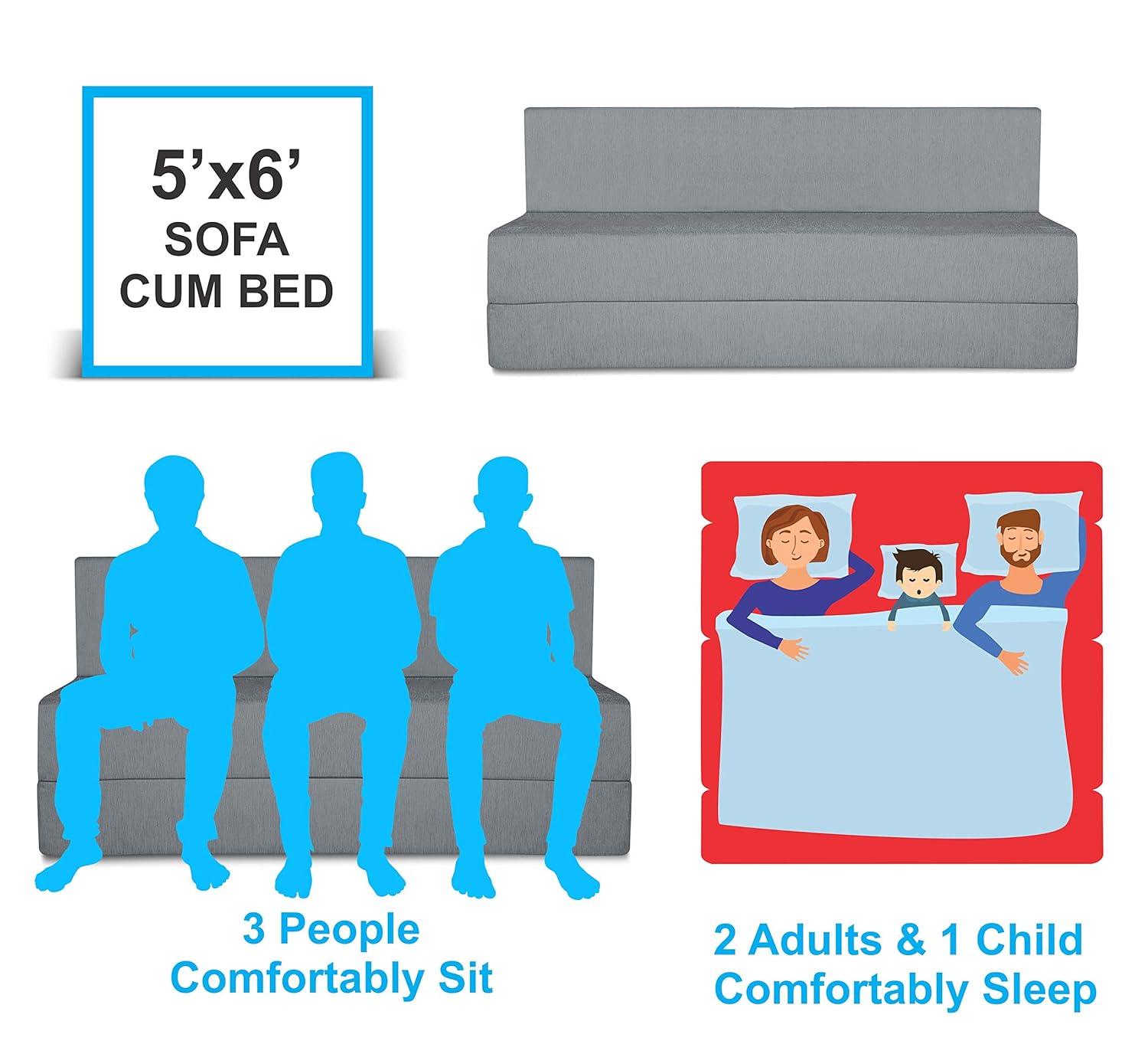 Adorn India Easy Treno 3 Seater Sofa Bed Sit & Sleep Perfect for Guest, Colour Grey, 5’x6′
