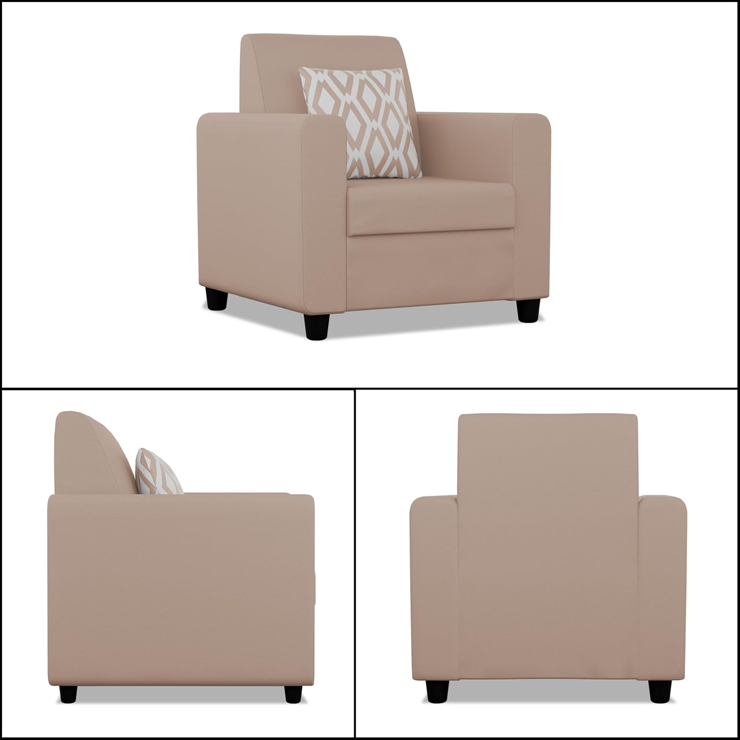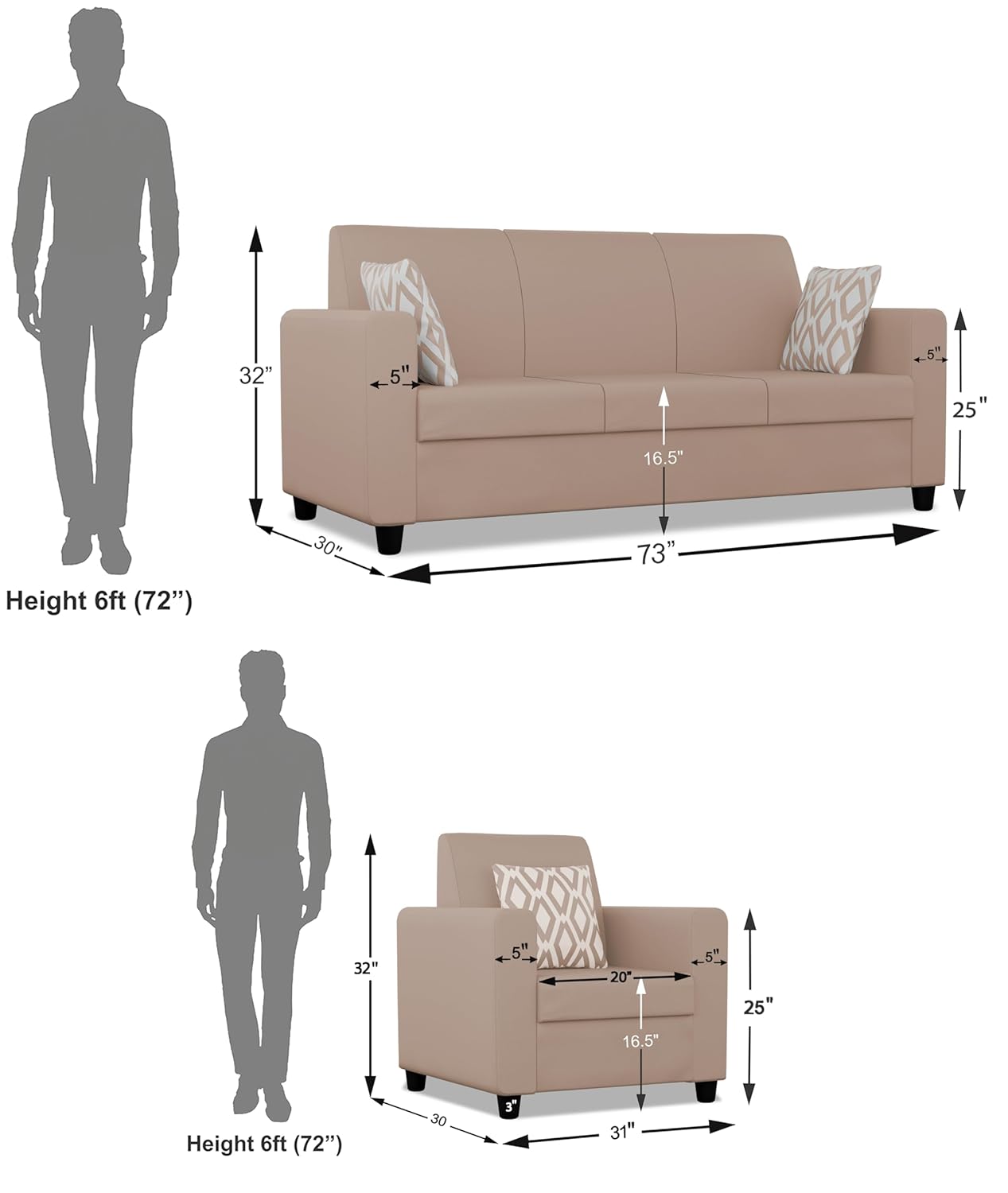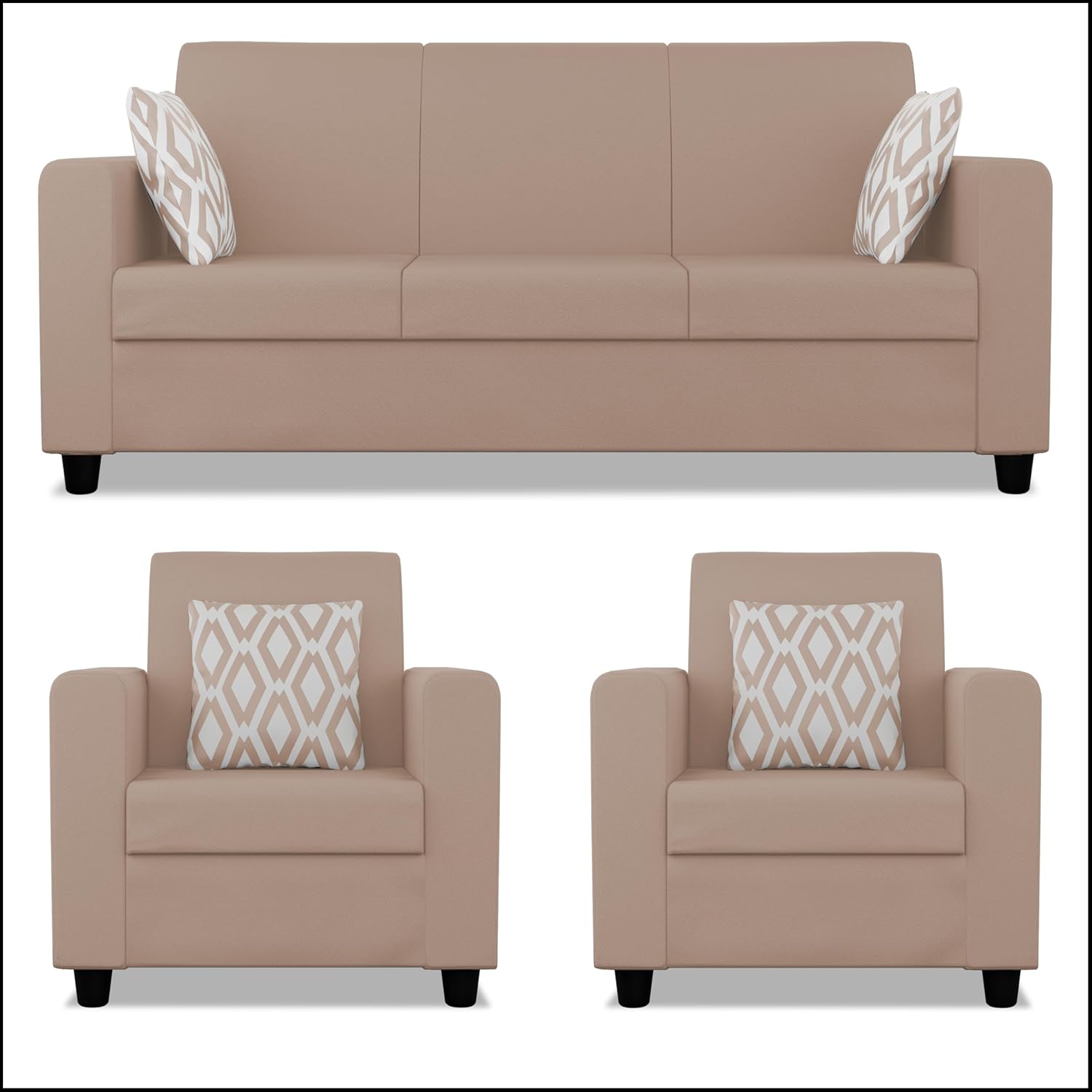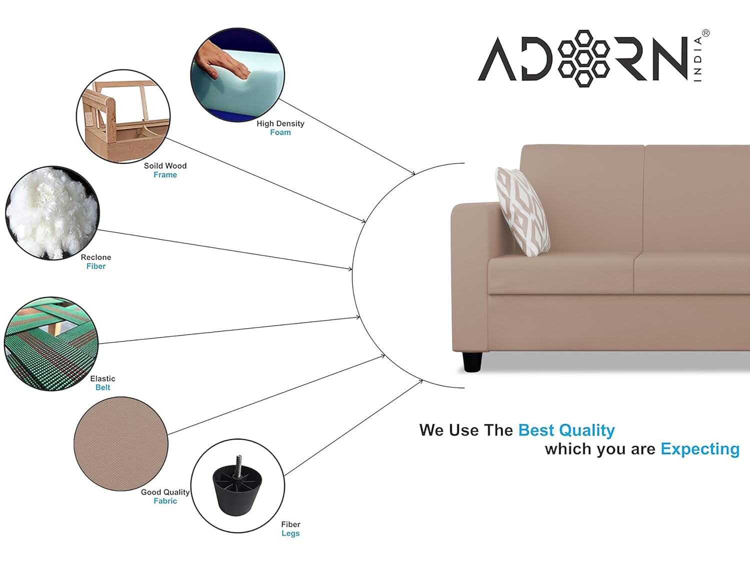 Product Material: Sal wood & Pine wood, Foam Material : seat 40 density foam , back style – high density recron fiber & Foam etc. / Heavy duty Zigzag Spring – Upholstery material : chenille Fabric (Polyester) – Leg Material – Heavy duty industrial fiber legs – Product color : Beige