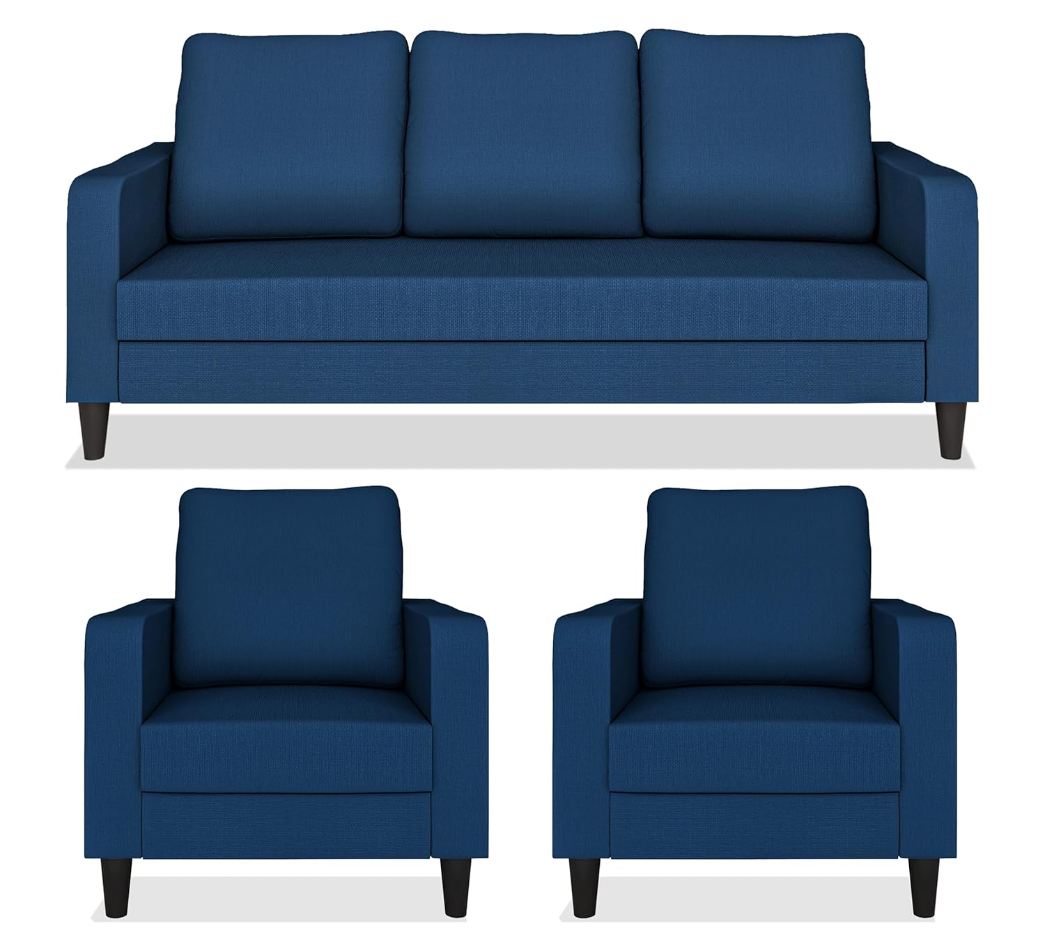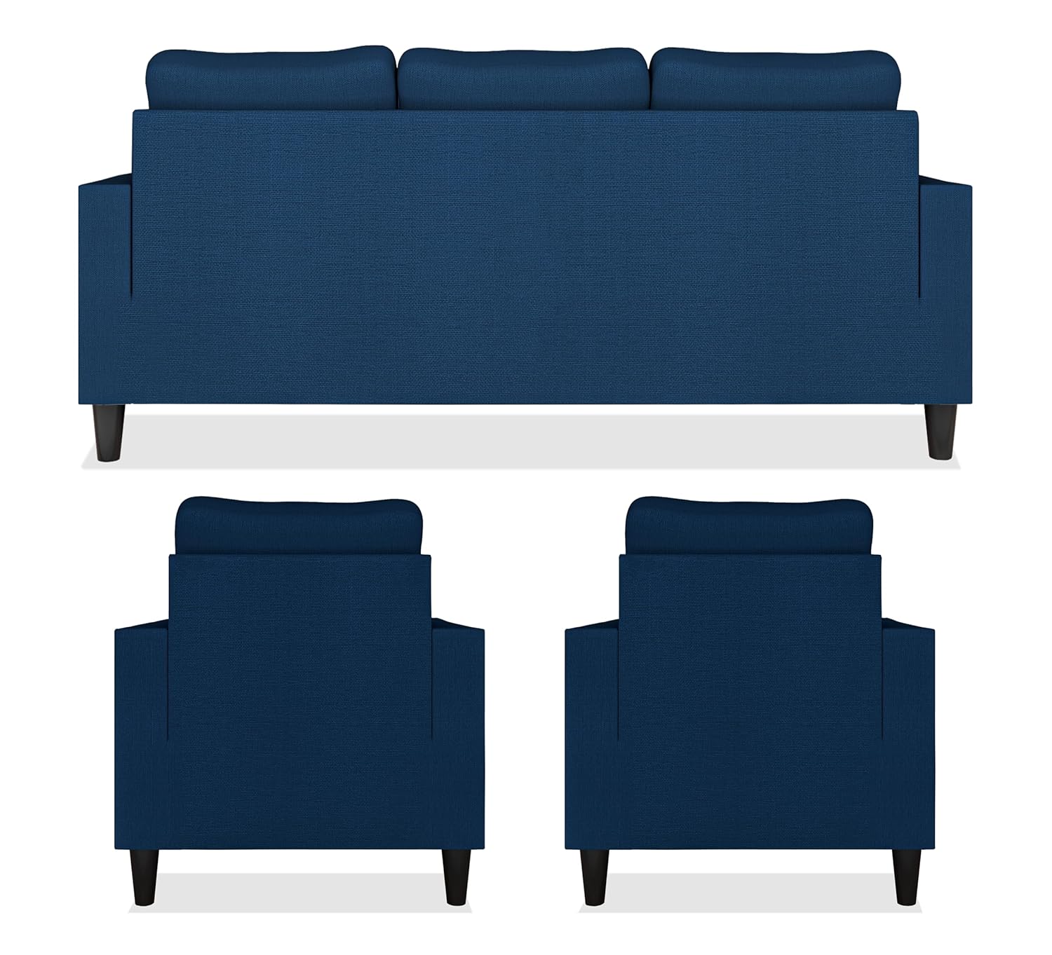 Product Material: Sal wood & Pine wood, Foam Material : seat 40 density foam , back cushion high density recron fiber etc. / Heavy duty Zigzag Spring – Upholstery material : chenille (Polyester) – Leg Material – Heavy duty industrial fiber legs – Product color : Blue