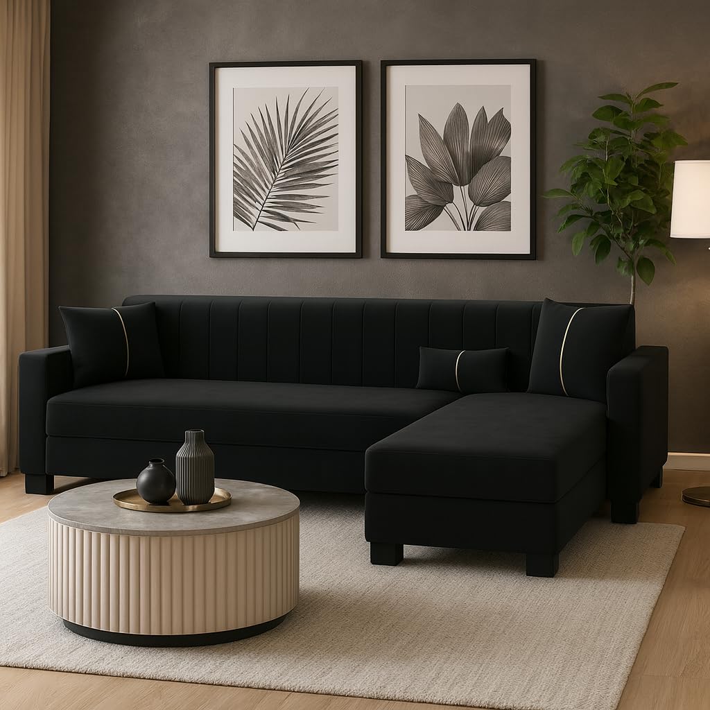 BOX CONTAINS: 5 Seater Velvet Fabric RHS L Shape Sofa Set | ASSEMBLY : Pre-Assembled Sofa Set
