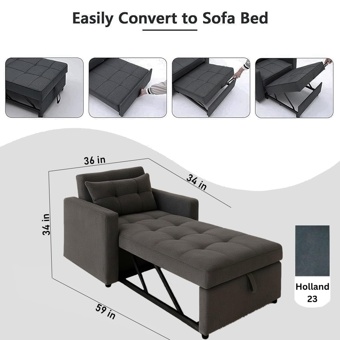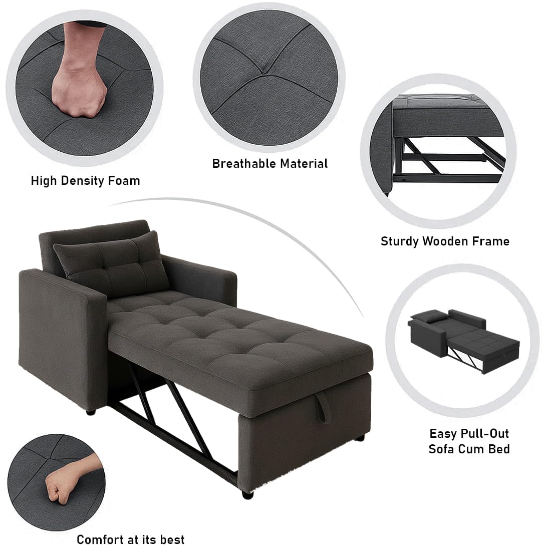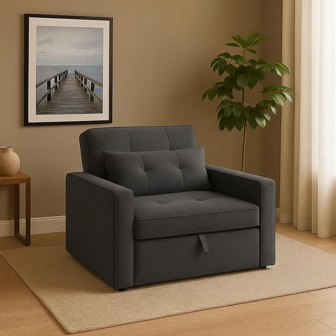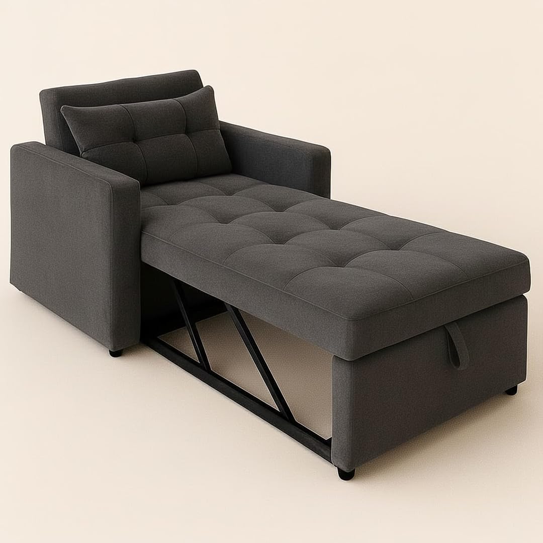 Be the first to review “CASASTYLE Trissa 1 Seater Fabric Pull-Out Sofa Cum Bed (Dark Grey) – Premium Velvet Finish – Durable Comfort – Ideal for Living Room”