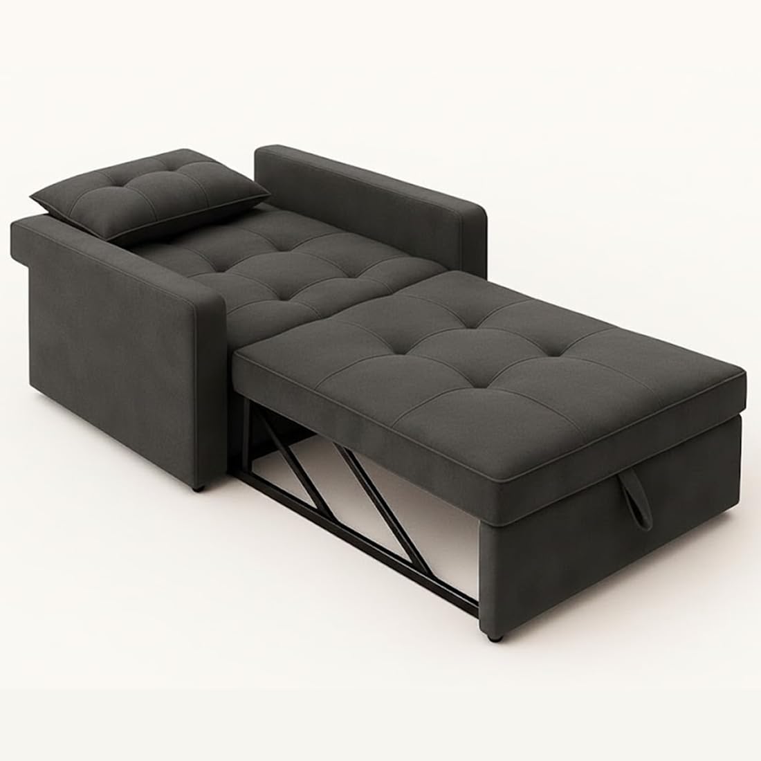 CASASTYLE Trissa 1 Seater Fabric Pull-Out Sofa Cum Bed (Dark Grey) – Premium Velvet Finish – Durable Comfort – Ideal for Living Room
