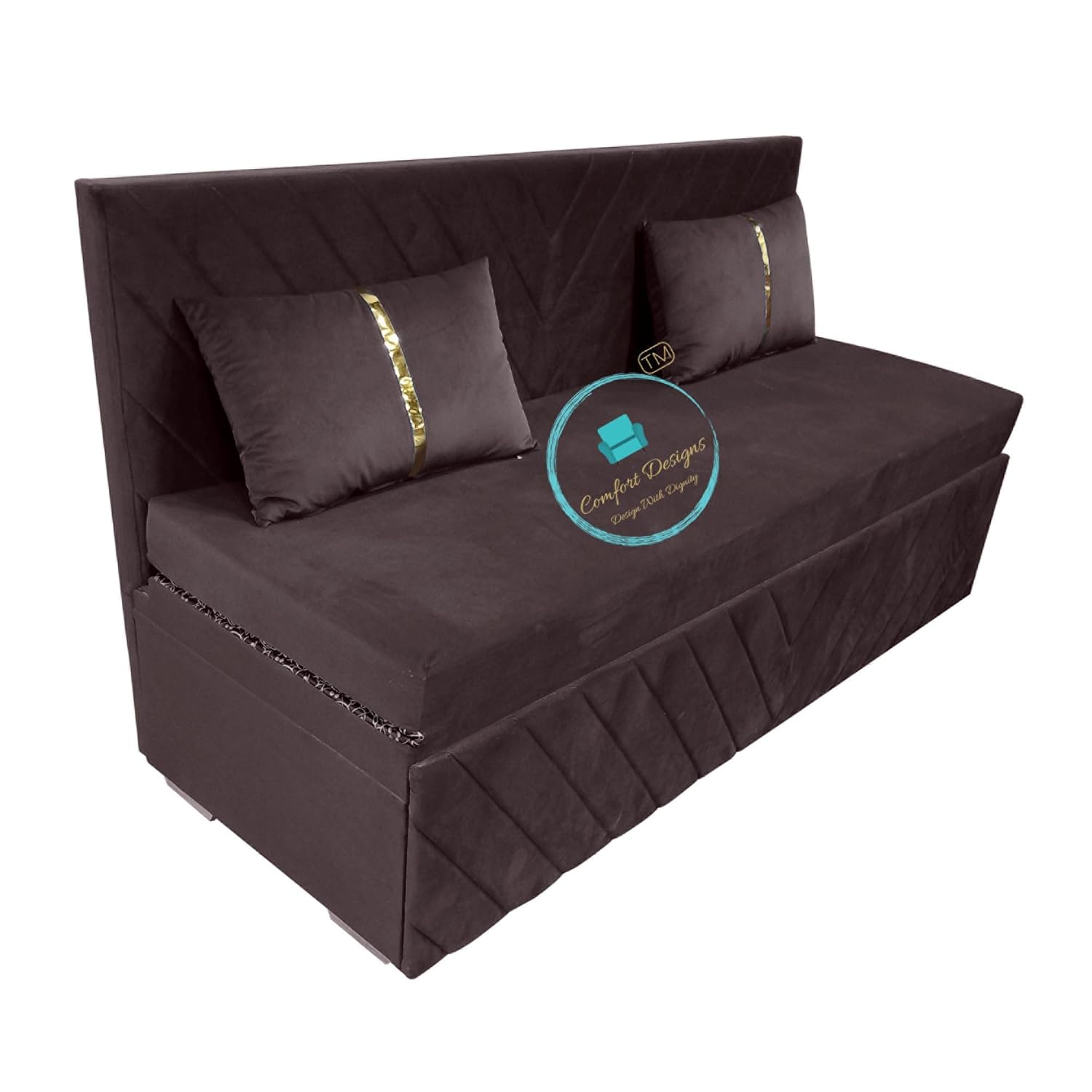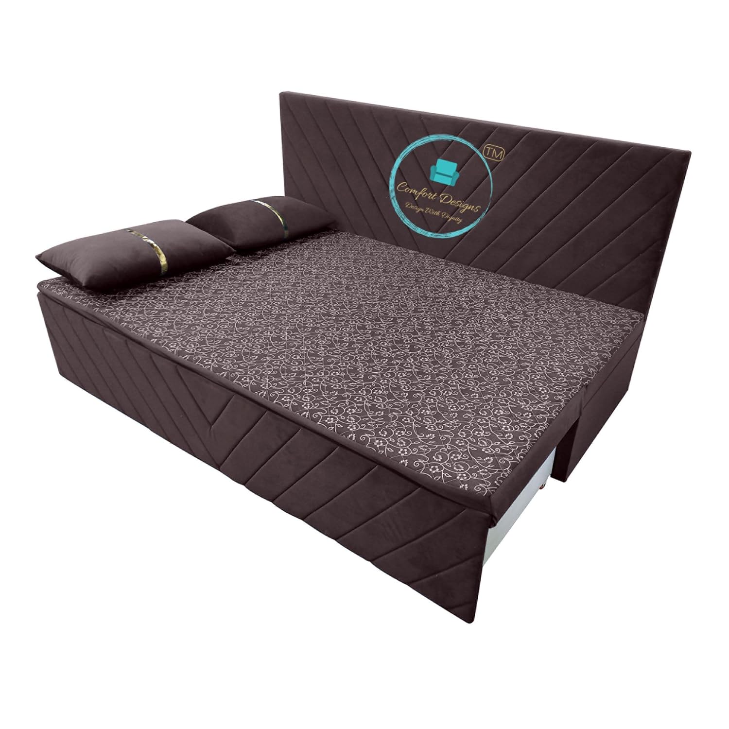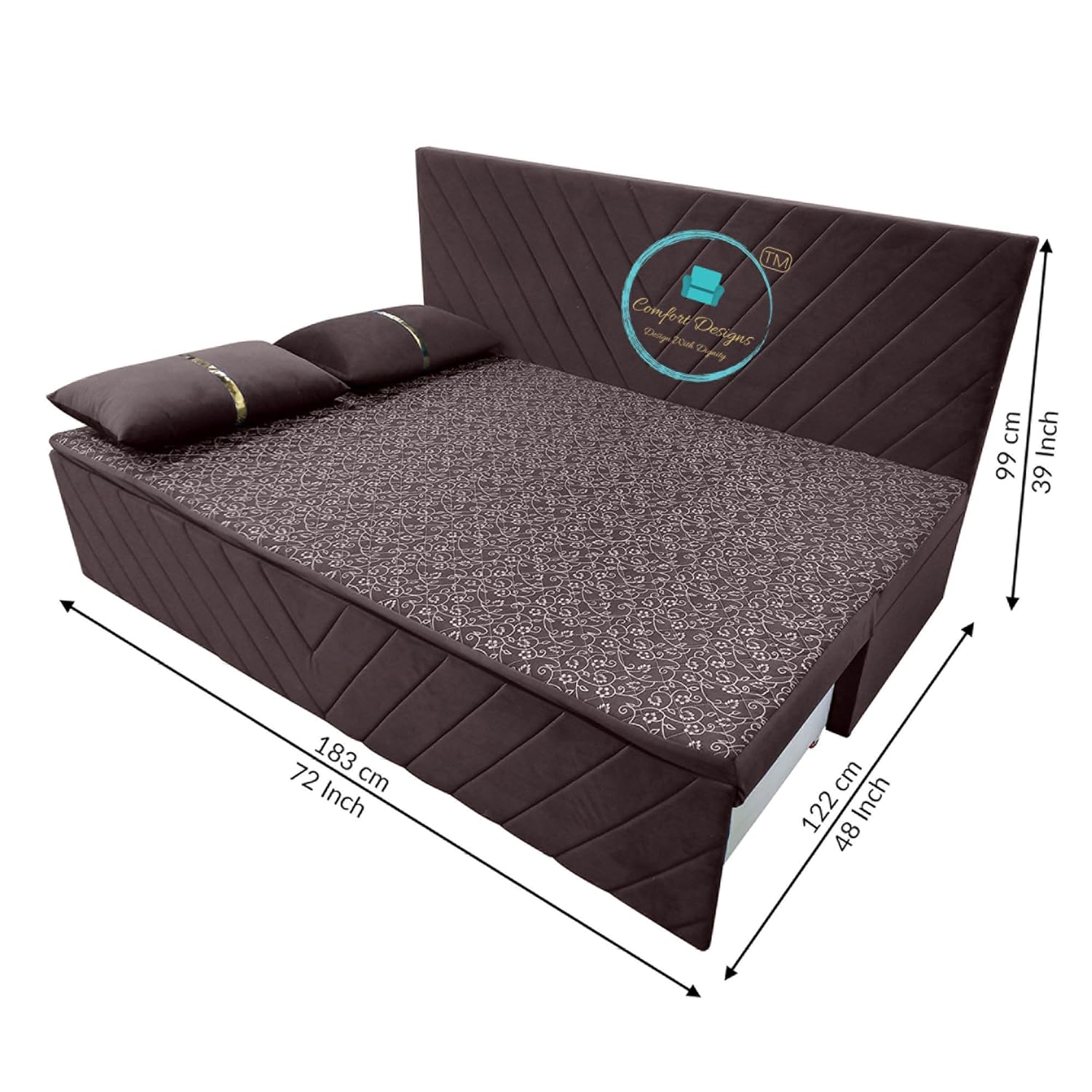 (as of Upgrade your living space with this luxurious Velvet Sofa Cum Bed from Comfort Designs. Crafted in rich velvet fabric, it features a sleek modern design with geometric stitching for a premium look. The dual-purpose design offers plush seating by day and a spacious bed by night—perfect for guests or compact homes. Comes with matching designer cushions for added style and comfort. Durable, stylish, and functional—this sofa cum bed is your perfect comfort companion.