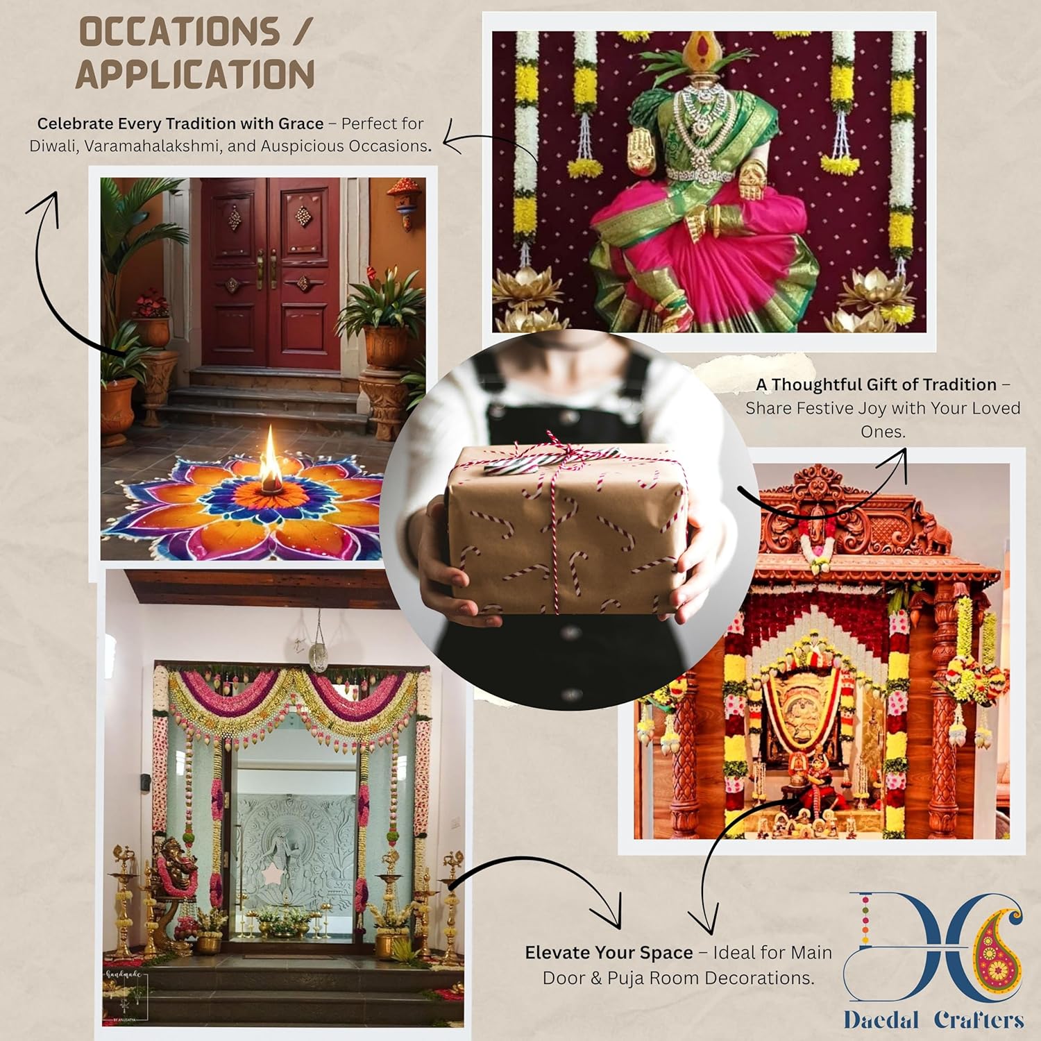 Versatile Festive & Gifting Choice – Whether used for pooja decoration items, toran for mandir, house warming decoration items, or wedding decoration items for home, this thoranam for entrance door latest design brings a festive vibe to any occasion.