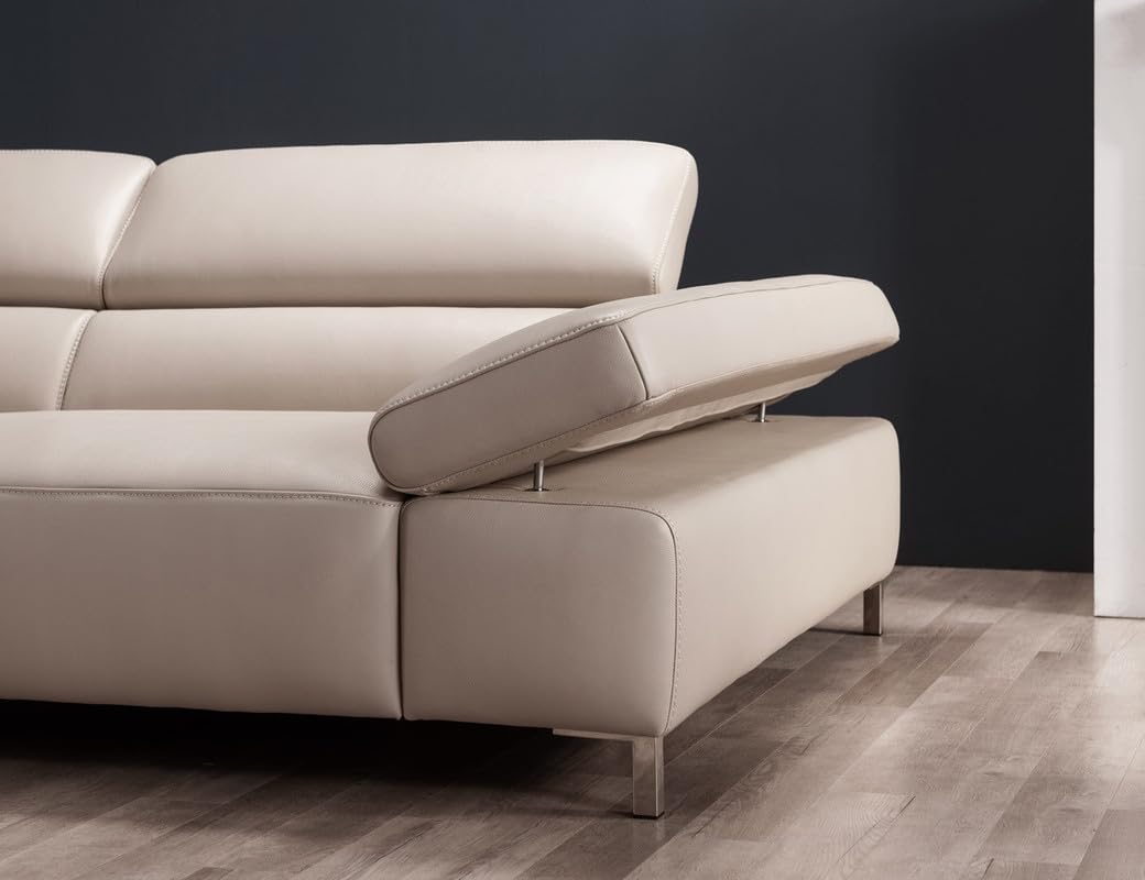 B] Outter material – 1)Leatherette – Its artificial leather made out of PVC and its know as faux leather it would never peel out or form any kind of cracks 2)Legs – The legs are made out of high quality SS steels. 3) The capacity of the sofa is for 2 seater. 4) The sofa is finished in Cream .
