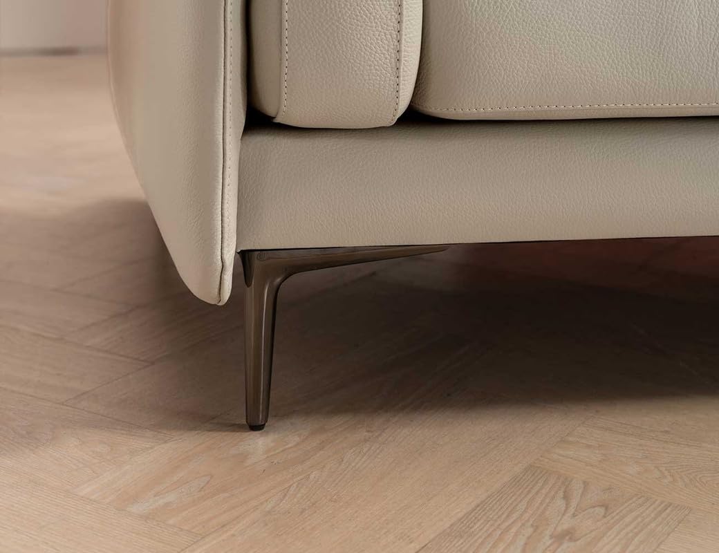 B] Outter material – 1)Leatherette – Its artificial leather made out of PVC and its know as faux leather it would never peel out or form any kind of cracks 2)Legs – The legs are made out of high quality SS steels. 3) The capacity of the sofa is for 8 seater. 4) The sofa is finished in Cement grey .
