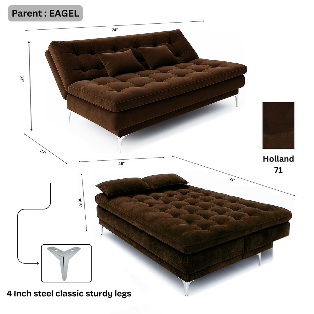 DESIGN: 3 Seater Sofa Cum Bed featuring modern styling, tufted back, and armless, perfect for contemporary living rooms