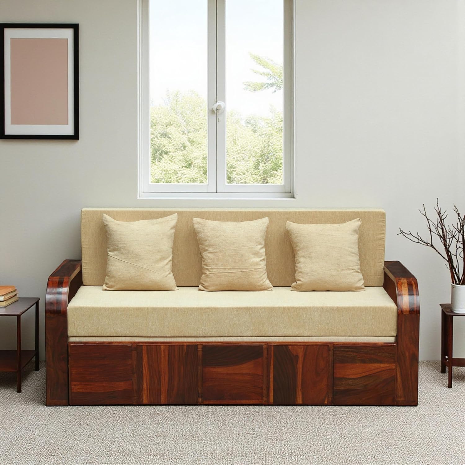 Material Craftsmanship: Crafted from good-quality sheesham wood, this sofa cum bed boasts exceptional craftsmanship and durability, ensuring long-lasting use and timeless appeal.