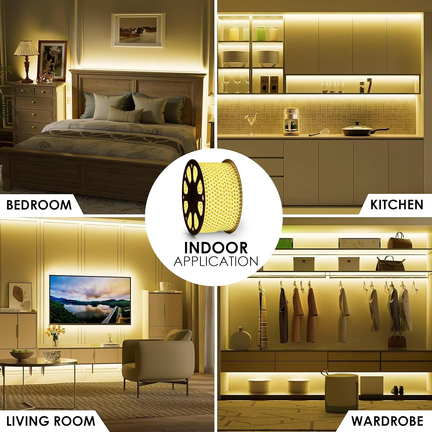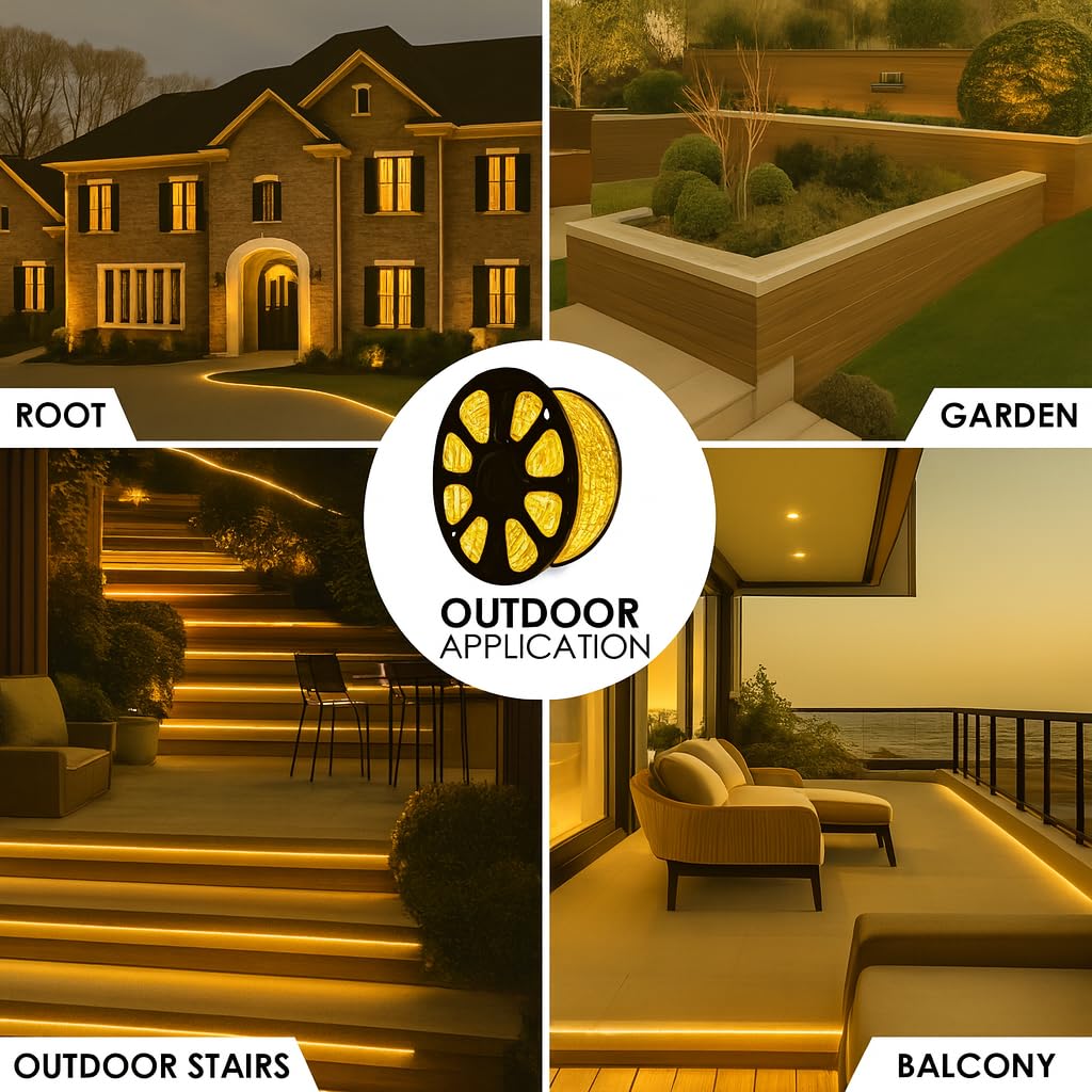 💡 Flexible Rope Light for Ceiling & Cove Lighting – Bendable PVC rope light which emits Warm White or Golden Yellow, perfect for LED strip light for ceiling, profile light strip ceiling, staircases , mirror borders,and cove light for false ceiling. Great for Diwali decoration for home, Christmas balcony lighting, or Ganesh Chaturthi mandap decor. Ideal for shelves, terrace ceiling, or as strip light for home decoration.