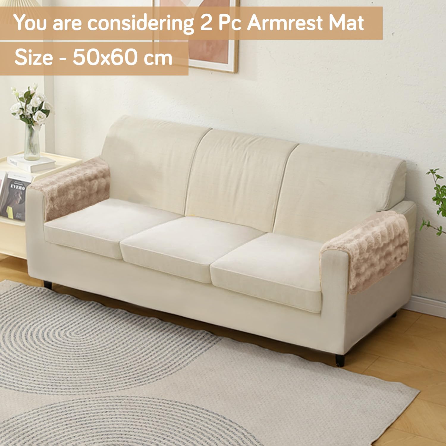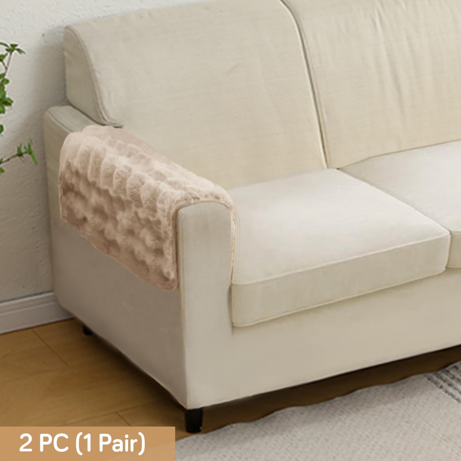 Sofa arm rest cover by HOKIPO. Premium faux rabbit fur fabric. Comes in a pack of 2 mats (1 pair)