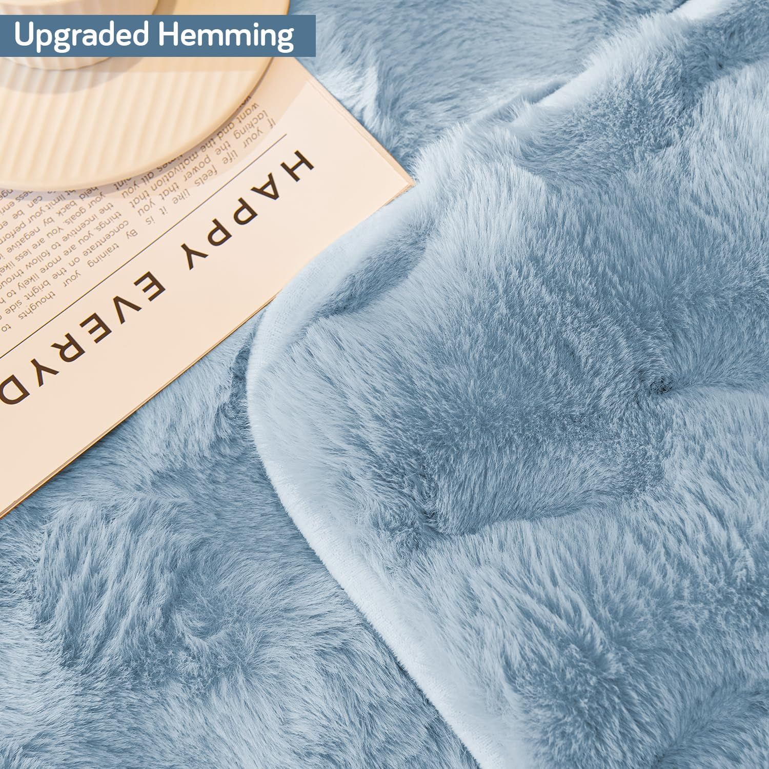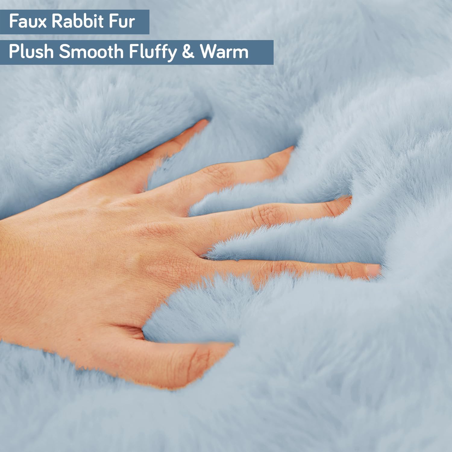 Package contains HOKIPO Faux Rabbit Fur sofa mat, size 90(D) x 60(L) cm. Color – Charm Blue , , HOKIPO ,