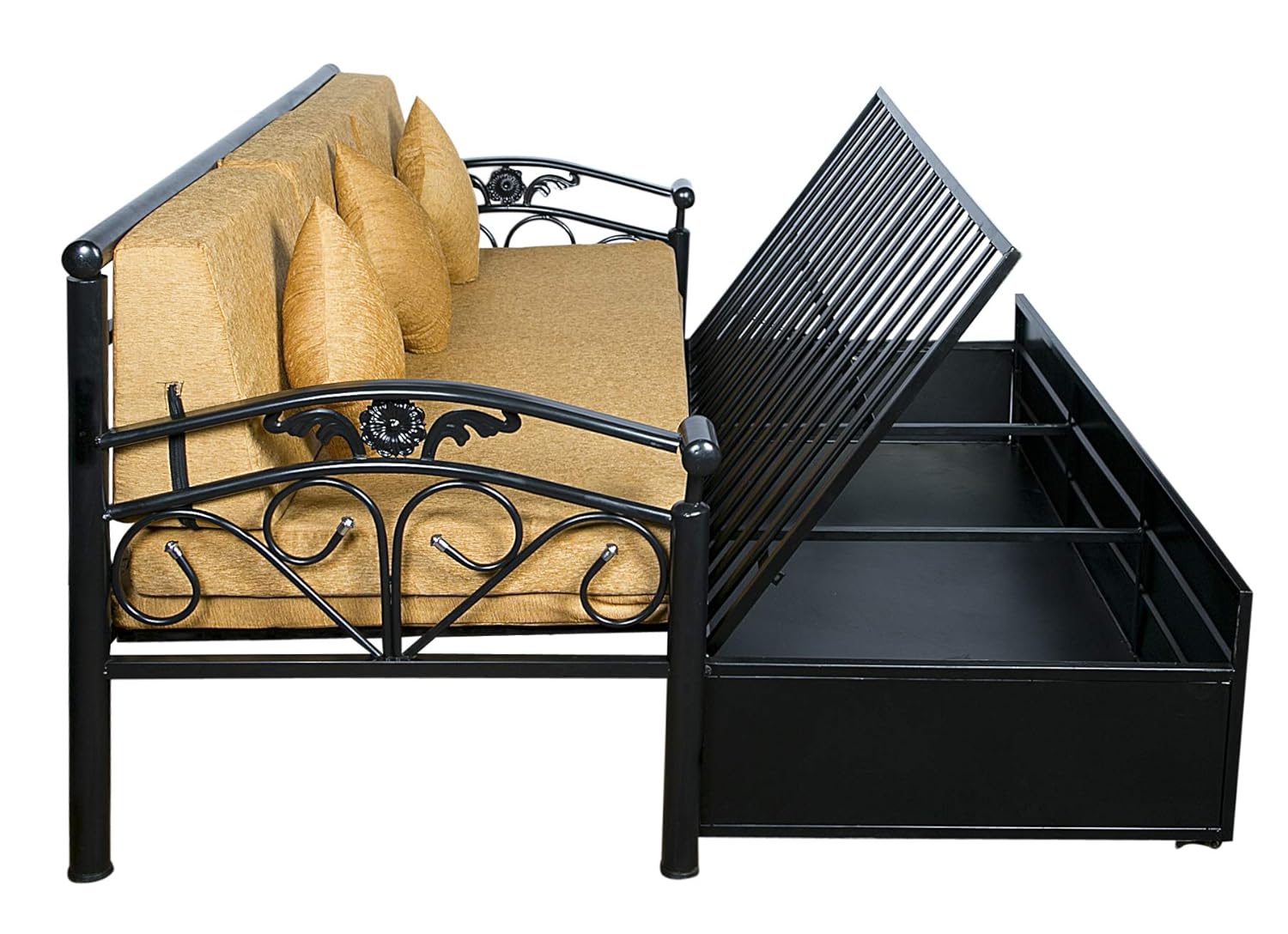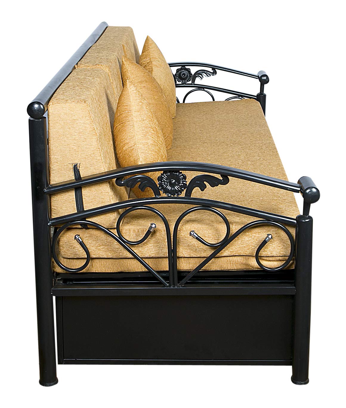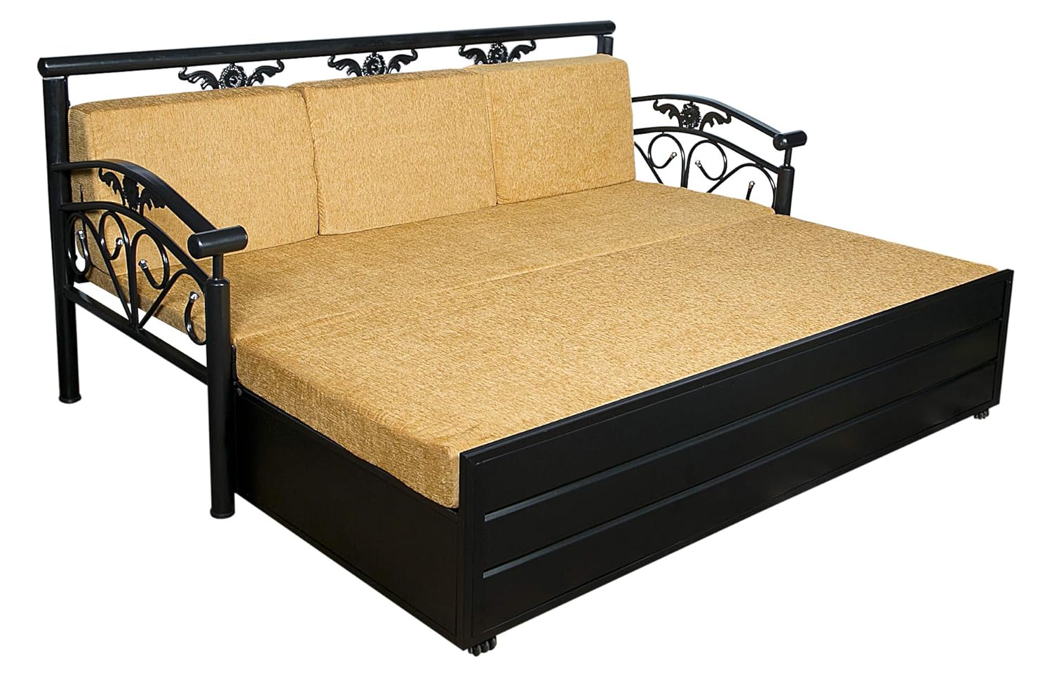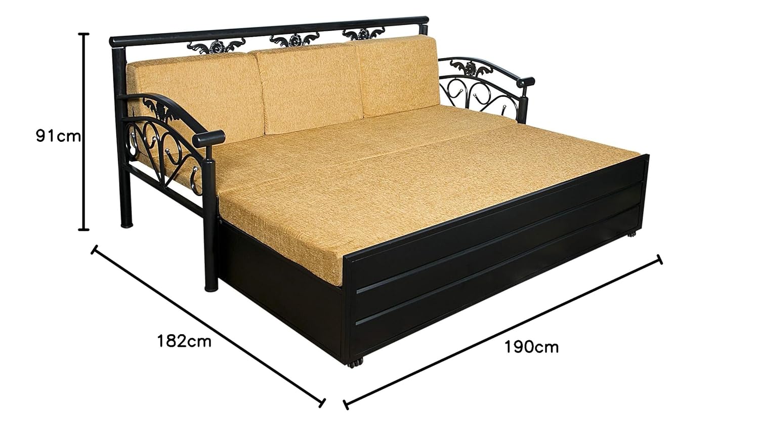 (as of King Size high quality furniture from the house of IK TRADERS and enhance the look of your home. It boasts of a beautiful upholstered headboard and storage space, this luxurious Sofa cum Bed will be a great addition to your living room. This sofa cum bed serves as a perfect savior when you have extra guests at home. Also, it is an ideal piece of furniture for those with space constraints, making it a must have. It’s metal construction makes it long lasting, strong and durable. Mattress is part of the Package.