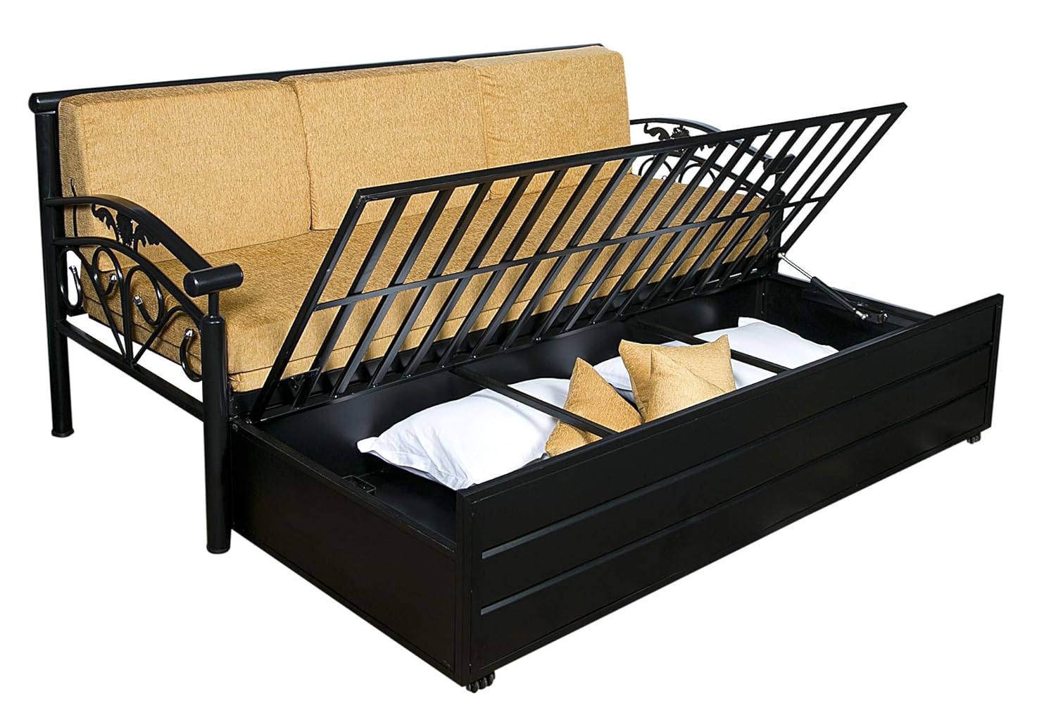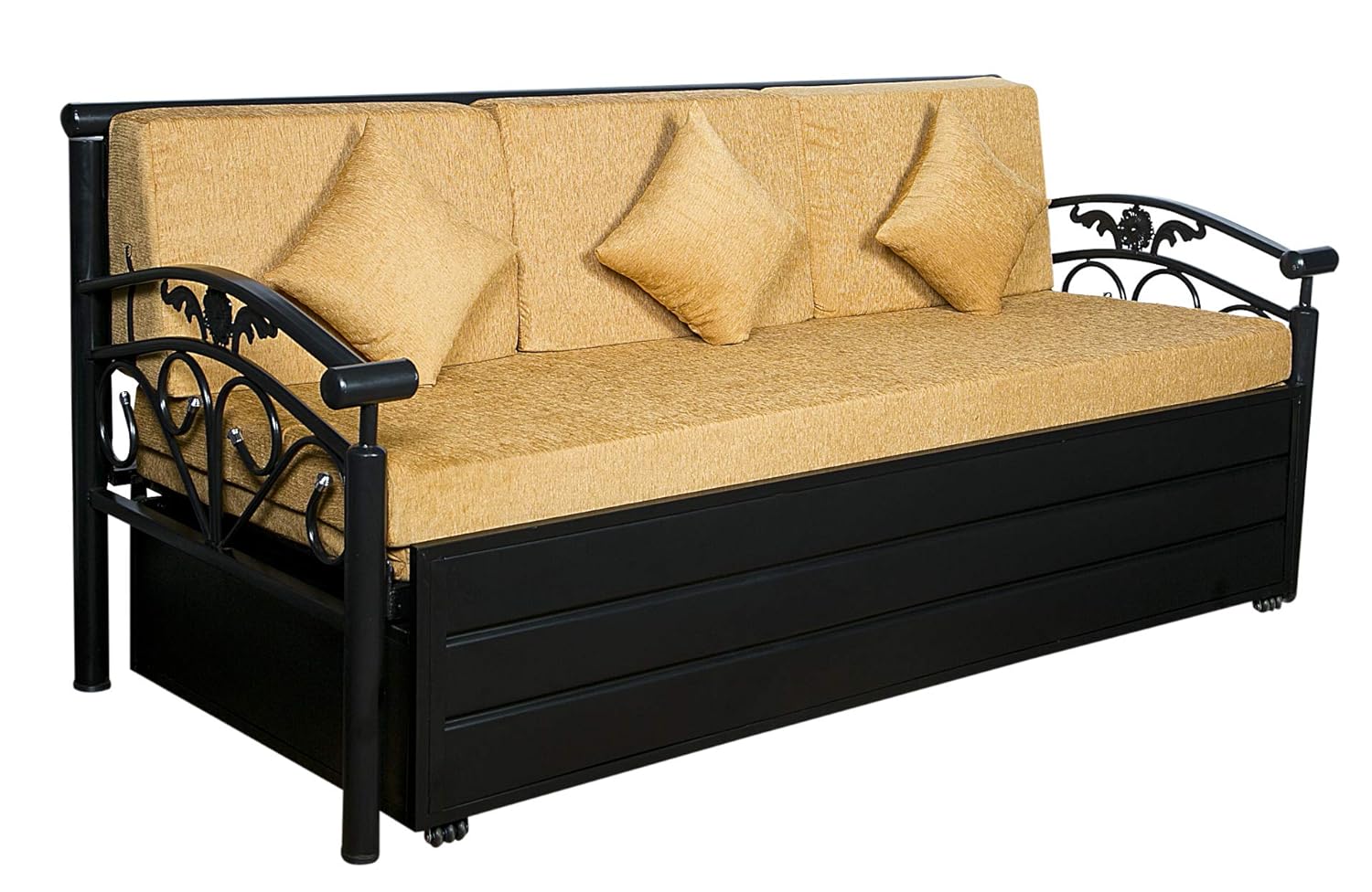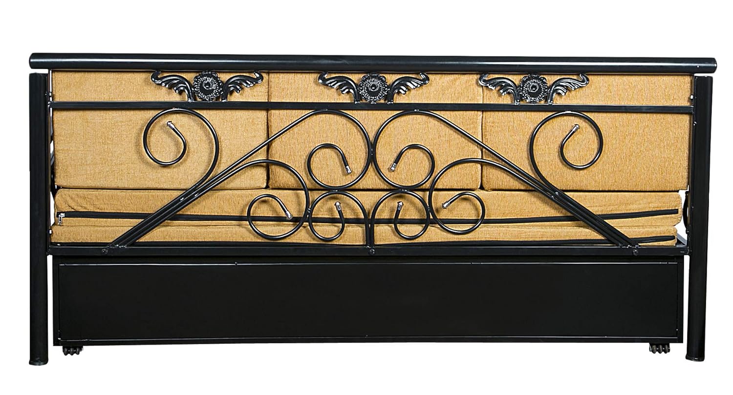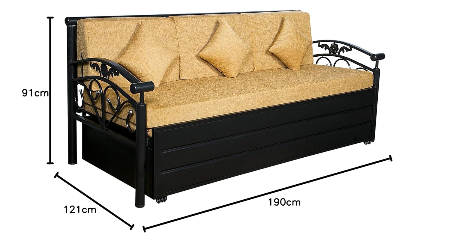 (as of SINGLE Size high quality furniture from the house of IK TRADERS and enhance the look of your home. It boasts of a beautiful upholstered headboard and storage space, this luxurious Sofa cum Bed will be a great addition to your living room. This sofa cum bed serves as a perfect savior when you have extra guests at home. Also, it is an ideal piece of furniture for those with space constraints, making it a must have. It’s metal construction makes it long lasting, strong and durable. Mattress is part of the Package.