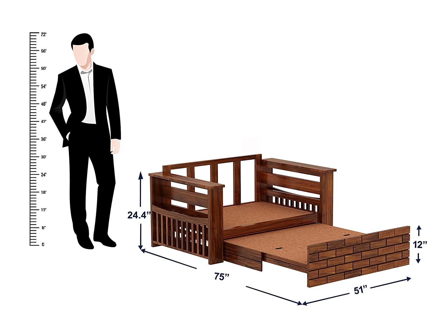 Sofa Cum Bed Dimensions(In Inch): Length 75 X Width 51 X Height 24.4 | Basic Assembly Required | Wooden Sofa Cum Bed, Mattress And Three Small Cushion Are Not Included.