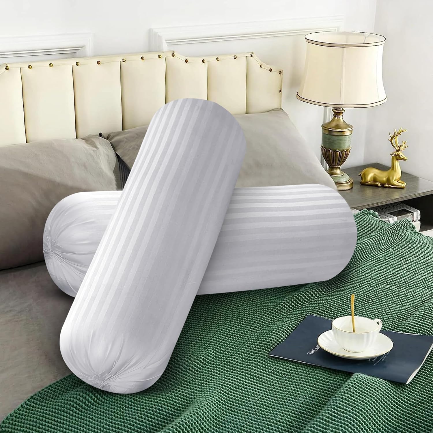 Versatile Design: The round bolster shape of these pillows makes them versatile for various uses. They can be used as neck pillows, lumbar support, decorative pillows, or even for yoga and meditation.