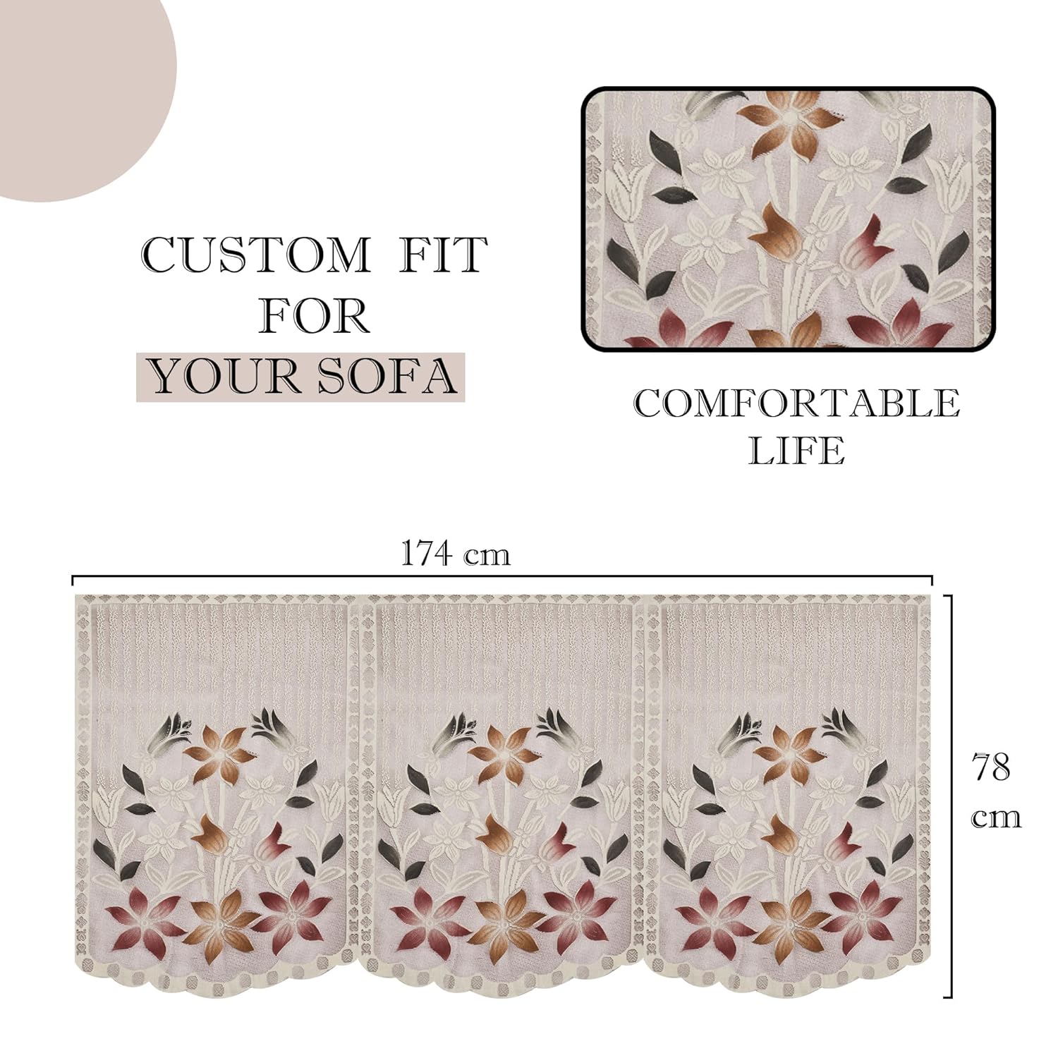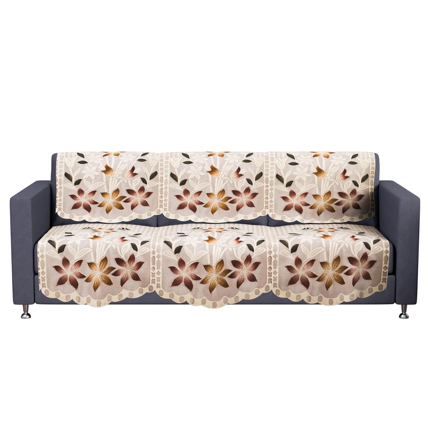 ✅ Package Contains – (6 Pcs) 3 Seater Sofa Cover | Color – Brown Printed Lining | Material – Cotton | Product Dimensions – 174 cm x 78 cm x 1 cm