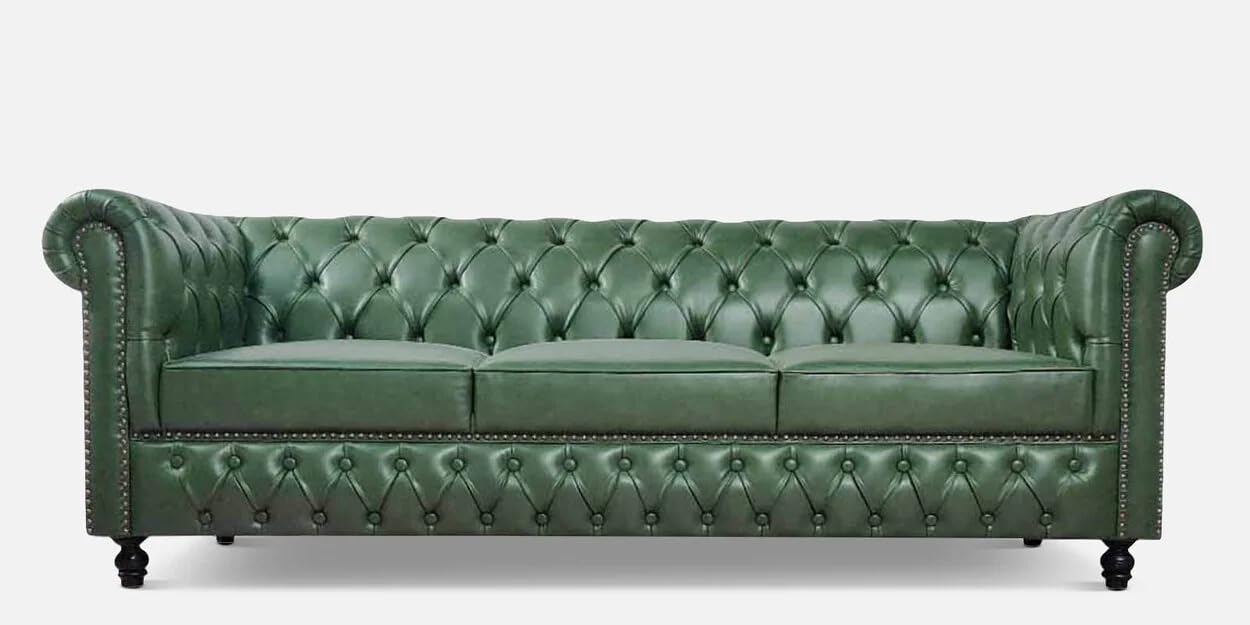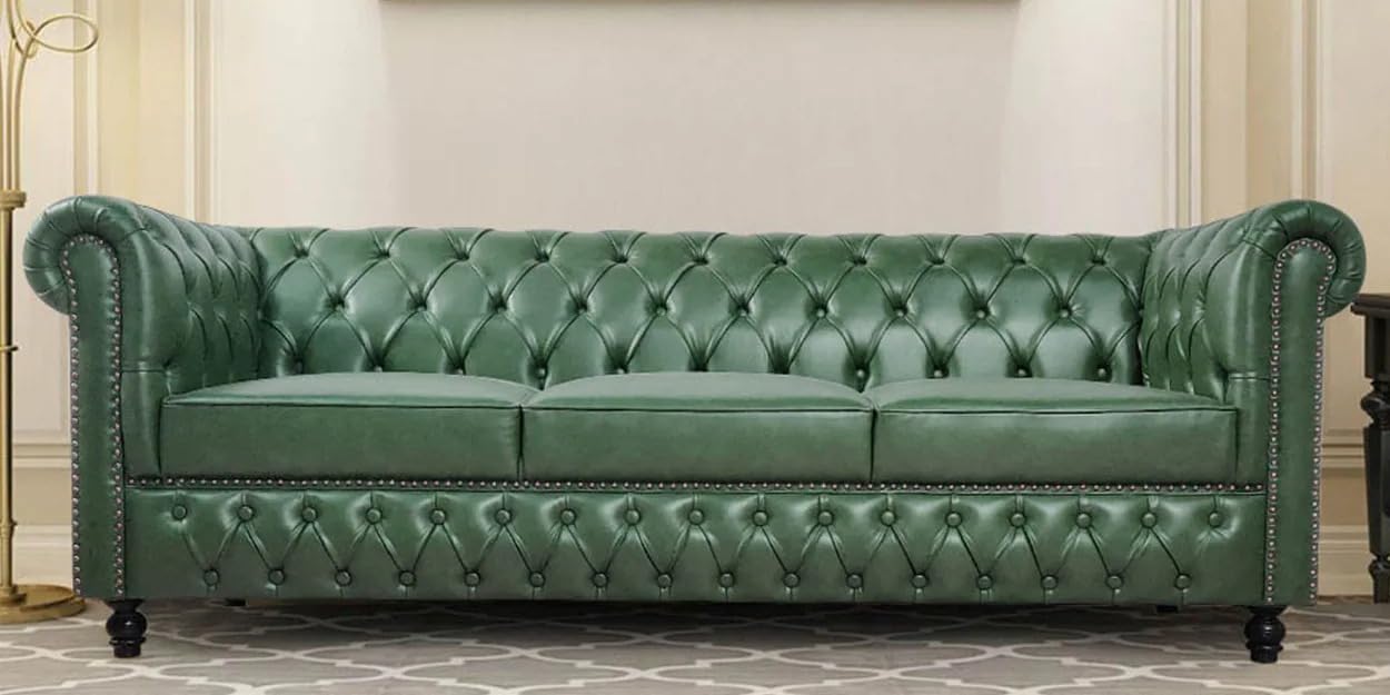 CHESTERFIELD STYLE: Designed with the traditional Chesterfield style in mind, this piece hits all the key elements, with deep button tufting, nailhead accents, scrolled arms, and turned legs.