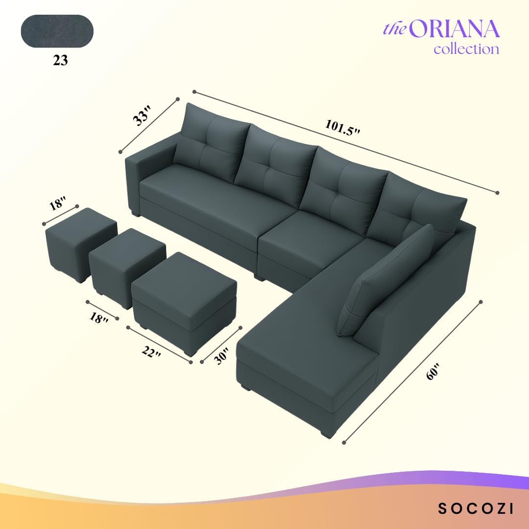 (as of Transform Your Living Space with SOCOZI Sofa Sets. Welcome to the world of SOCOZI, where Classic comfort meets modern design. Our exclusive collection of sofa sets is specifically designed to maximize seating capacity and style in your homeComfort and Style: The SOCOZI sofa set is designed for deep relaxation. Sink into the plush seating crafted with good density foam, providing the perfect balance of softness and ergonomic support. The stylish L-configuration is a smart choice for utilizing corner space and naturally creating a defined entertainment or lounging area in your living room. Investing in a SOCOZI sofa means investing in quality and practicality. The internal structure uses a robust combination of seasoned solid wood for core strength, paired with high-quality engineered wood components. This design ensures unwavering durability while keeping the set lightweight enough for easy moving and repositioning?a key benefit for redecorating or cleaning. The high-quality upholstery is both soft and exceptionally hard-wearing, perfect for homes with daily use.