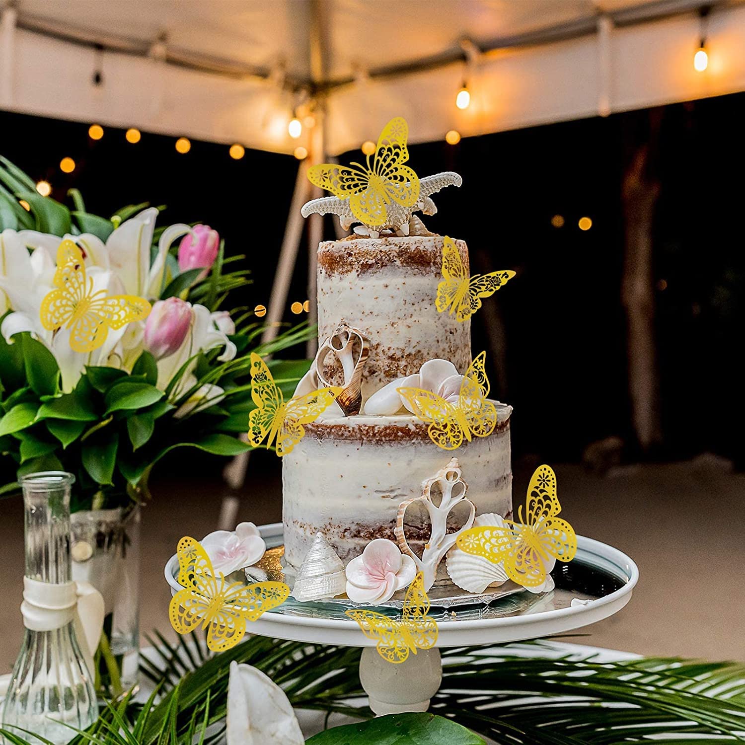 12pcs Golden 3D Butterflies for Decoration – 4pcs 12cm / 4pcs 10cm / 4pcs 8cm golden 3D Butterfly.