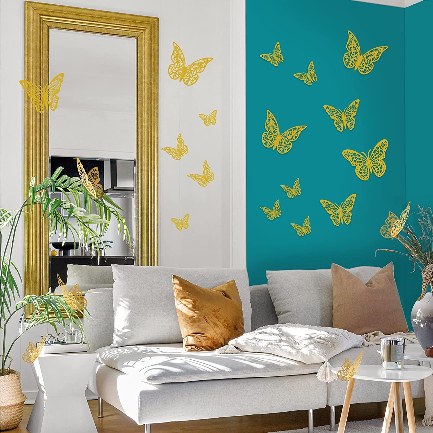 AESTHETIC ROOM DECOR SET: Elevate your home with this 12-piece set of golden butterfly wall stickers made from premium cardstock. Designed for aesthetic home decor lovers, these 3D butterfly stickers come in 3 sizes and add a magical touch to any space. Ideal for room decor aesthetic for girls, aesthetic wall decor items, and aesthetic room decor themes. Perfect as butterfly decoration for birthday events or aesthetic decor for study table decor items. Also complements balloon decoration kit, balloons for decoration, and balloons for birthday themes.
