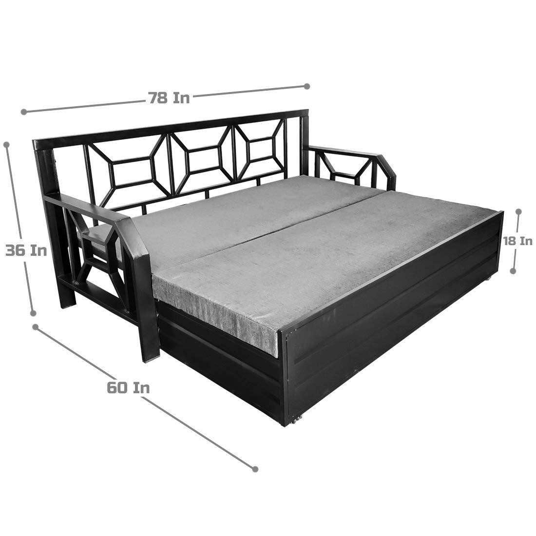 | Included Components | Sofa Cum Bed Metal Frame, Mattress, Back Cushion, Pillows |