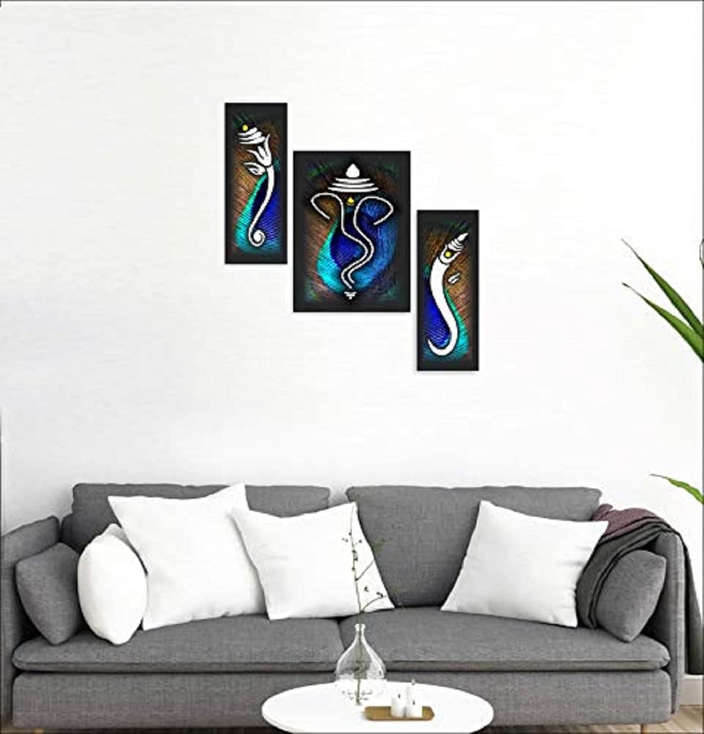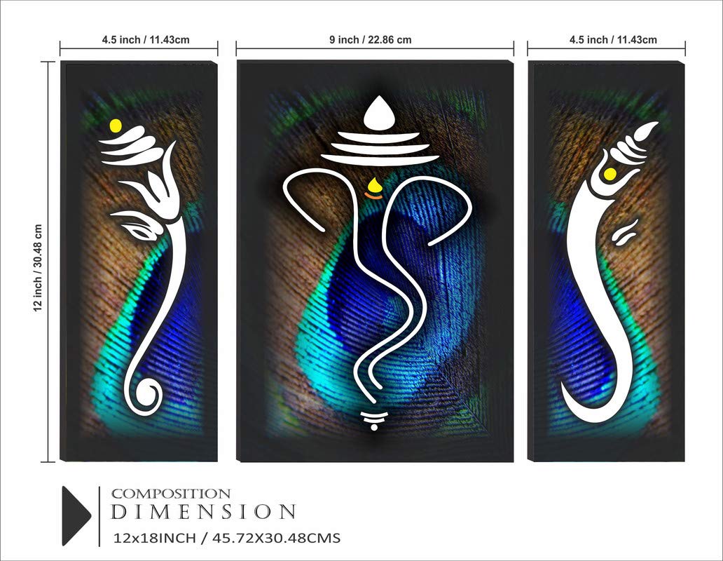 SAF Ganesha UV Textured Home Decorative Self Adhesive Religious Painting Set of 3 (Multicolour, 12 Inch X 18 Inch, SANFJM1010)