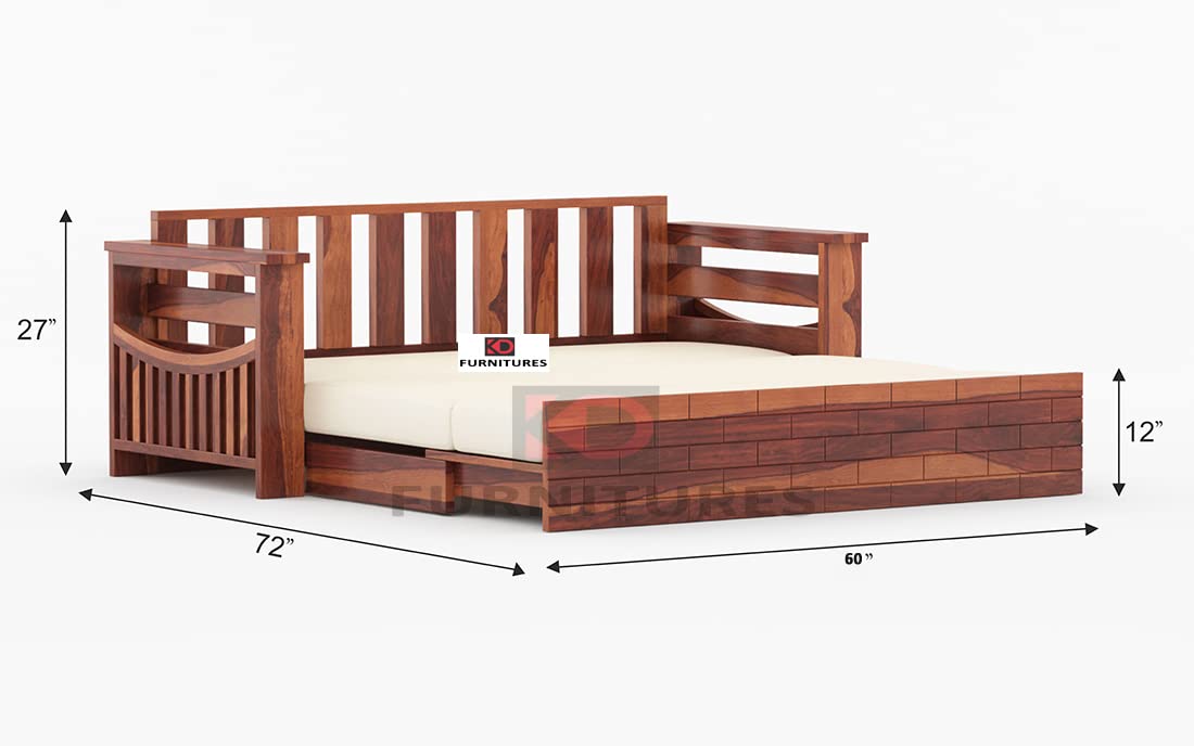 Dimensions (Inch) 62 L x 30 W x 30.5 H Bed Dimensions(Inch) 72 L x 52 W x 27 H Primary Material: Sheesham Wood | Secondary Material: MDF Is Only Applicable For Those Products Which Have Drawers | Product Name Wooden Sofa Cum Bed For Living Room. , , KD FURNITURES ,