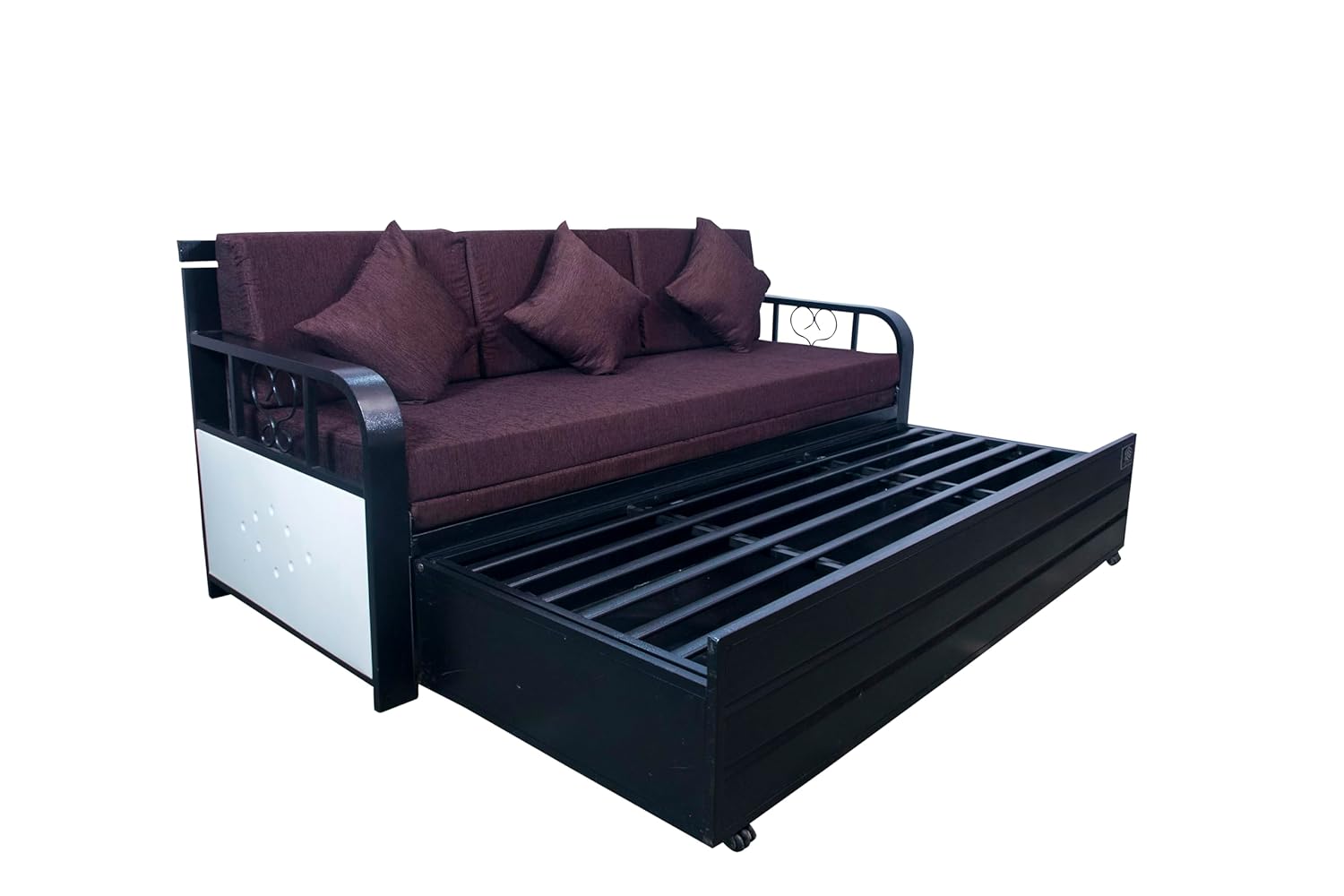 (as of Introducing the SOFTSOUL Furniture King Size Metal Sofa Cum Bed with Hydraulic Storage in a sleek and stylish Texture Finish – Black, the ultimate solution for your modern living space. This versatile piece of furniture seamlessly combines comfort, functionality, and contemporary design to elevate your home decor to a whole new level. Size Matters: At a generous 6 x 6 feet, this king-size sofa cum bed provides ample space for you and your loved ones to relax, unwind, or host guests comfortably. Whether it’s a cozy movie night with your family or a sleepover with friends, this piece caters to your needs effortlessly. Convertible Brilliance: This sofa cum bed effortlessly transforms from a stylish seating arrangement to a spacious bed in just a matter of seconds. Its easy-to-use hydraulic mechanism makes the transition smooth and hassle-free. No more wrestling with heavy mattresses or complicated folding mechanisms. Durable Design: Crafted from high-quality metal, this sofa cum bed is built to last. The sturdy frame ensures stability and longevity, even with daily use. The black texture finish not only adds to its aesthetics but also provides protection against wear and tear.