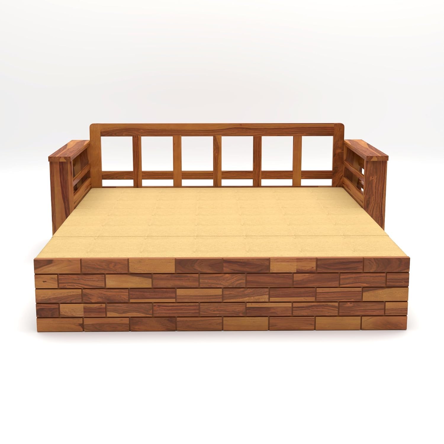 Solid Sheesham Wood 3 Seater Sofa Cums Bed For Home Furniture | Sofa Cums bed for living room wooden | Without pillow without Mattress | Living Room | Sofa Cums bed | With Storage |