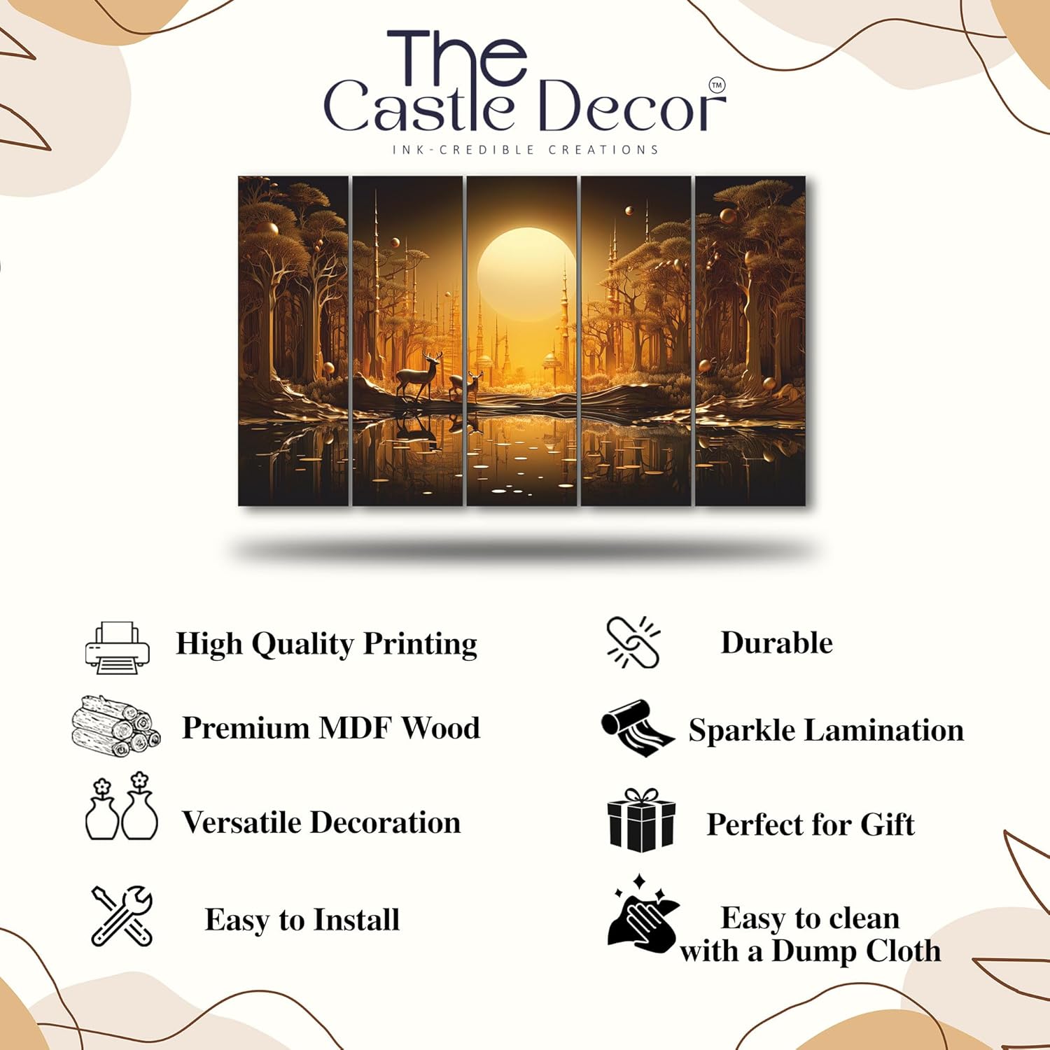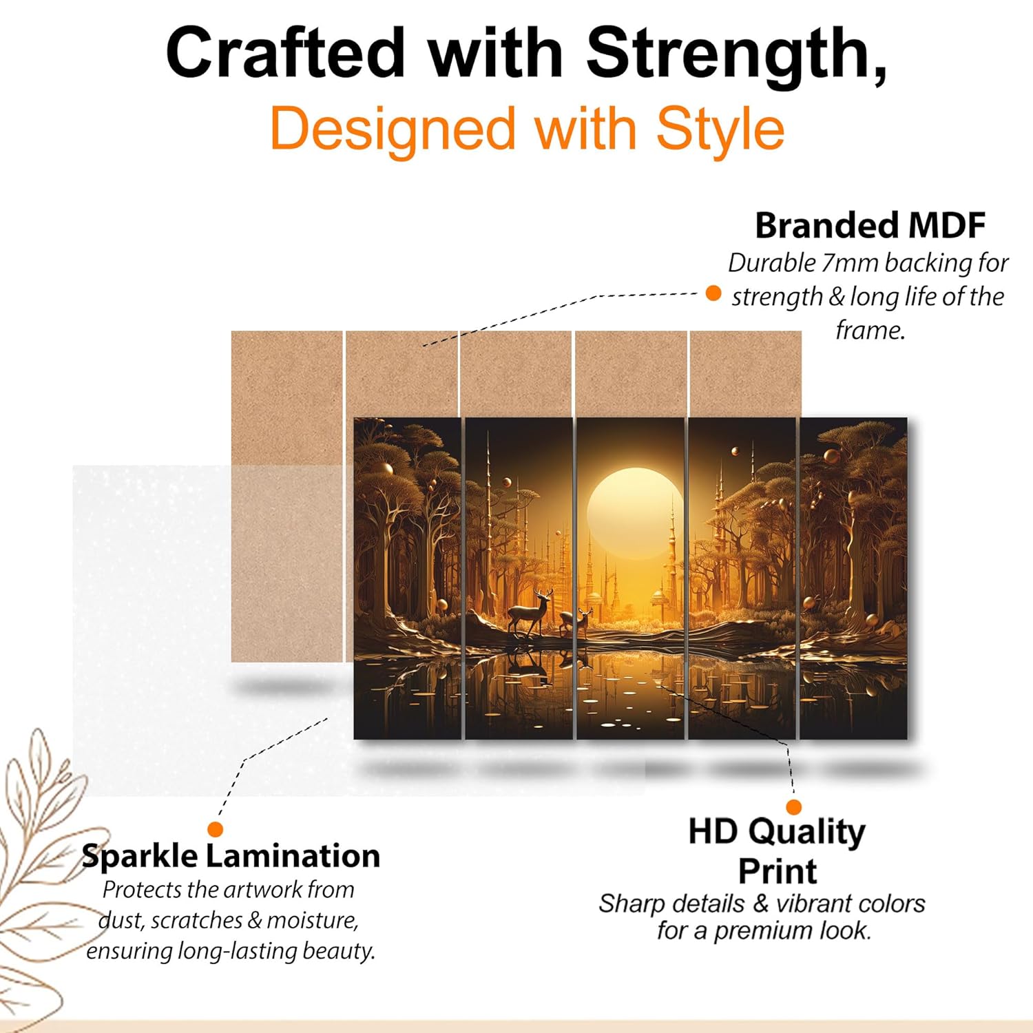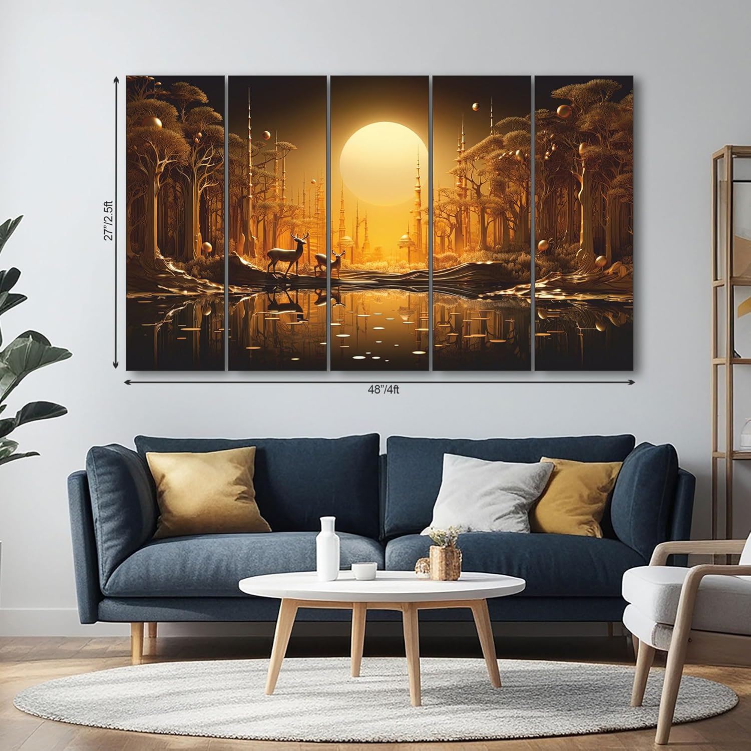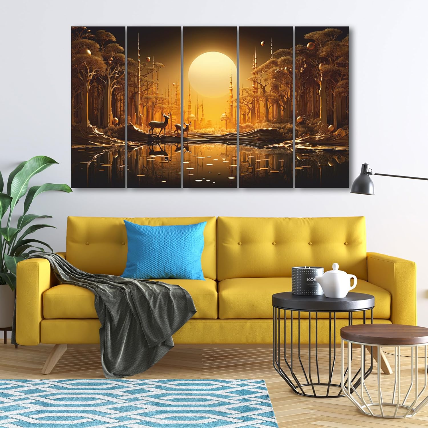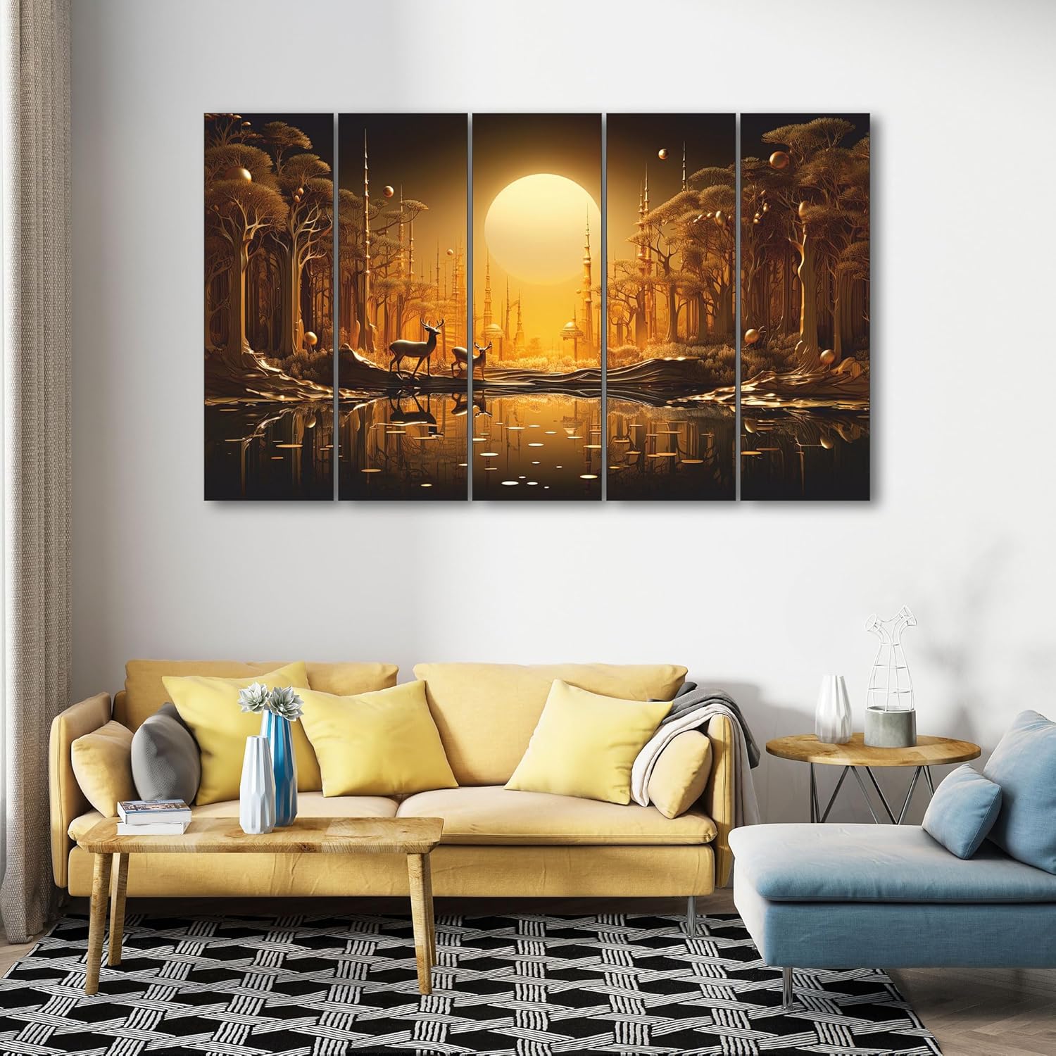 Premium Multi-Panel Wall Art Set – This big size wall painting comes in a set of 5 panels (27×48/36×60 inches), framed on high-quality MDF wooden base with a sparkle matte lamination for long-lasting durability and vibrant colors.