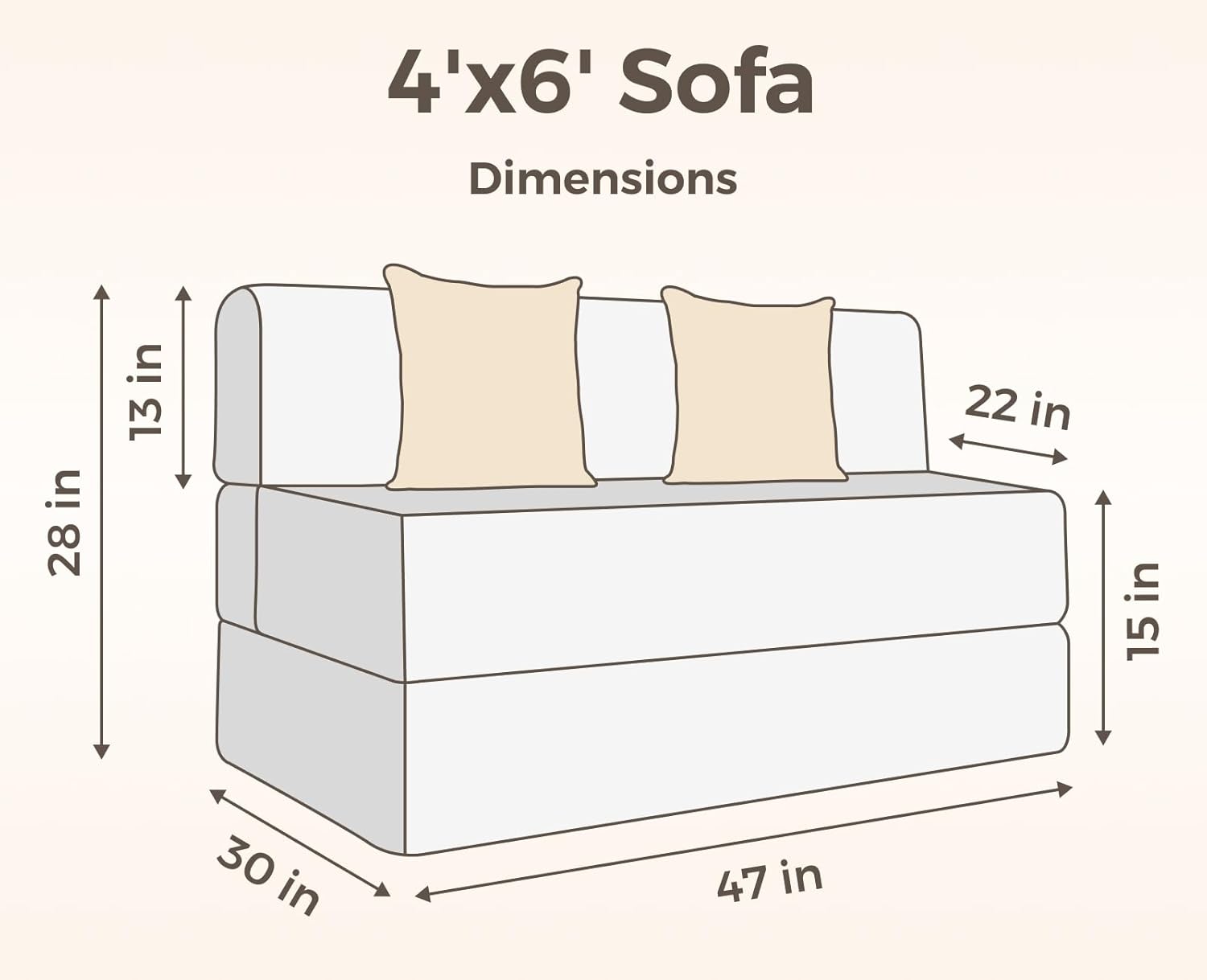 ☑ 2 SEATER SOFA| TWIN BED: When used as bed this measures 72″ x 47″ x 7.5″, almost the size of a twin bed. As sofa this product measures 47″x30″x28″. Our sofa beds are handcrafted with a measurement error tolerance of +/- 2%