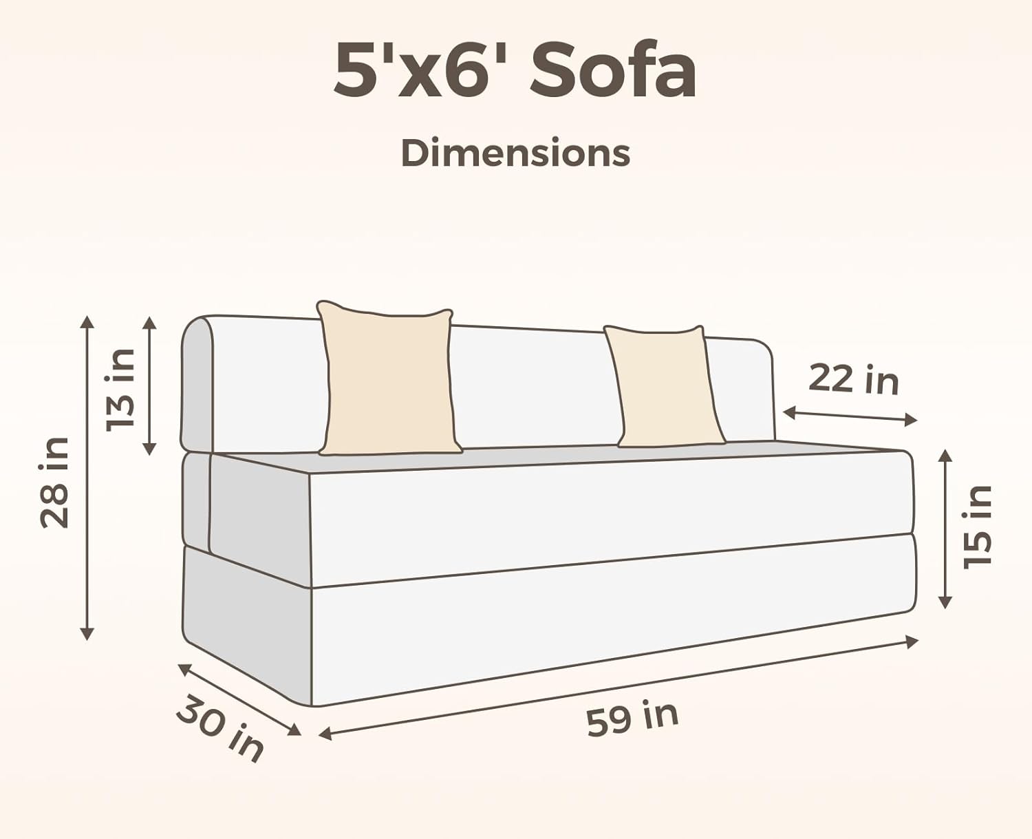 Spacious seating and sleeping: As a sofa, this product measures 59″ x 30″ x 28″, while as a bed, it provides ample space with dimensions of 72″ x 59″ x 7.5″, almost equivalent to a queen bed, accommodating up to three people comfortably.