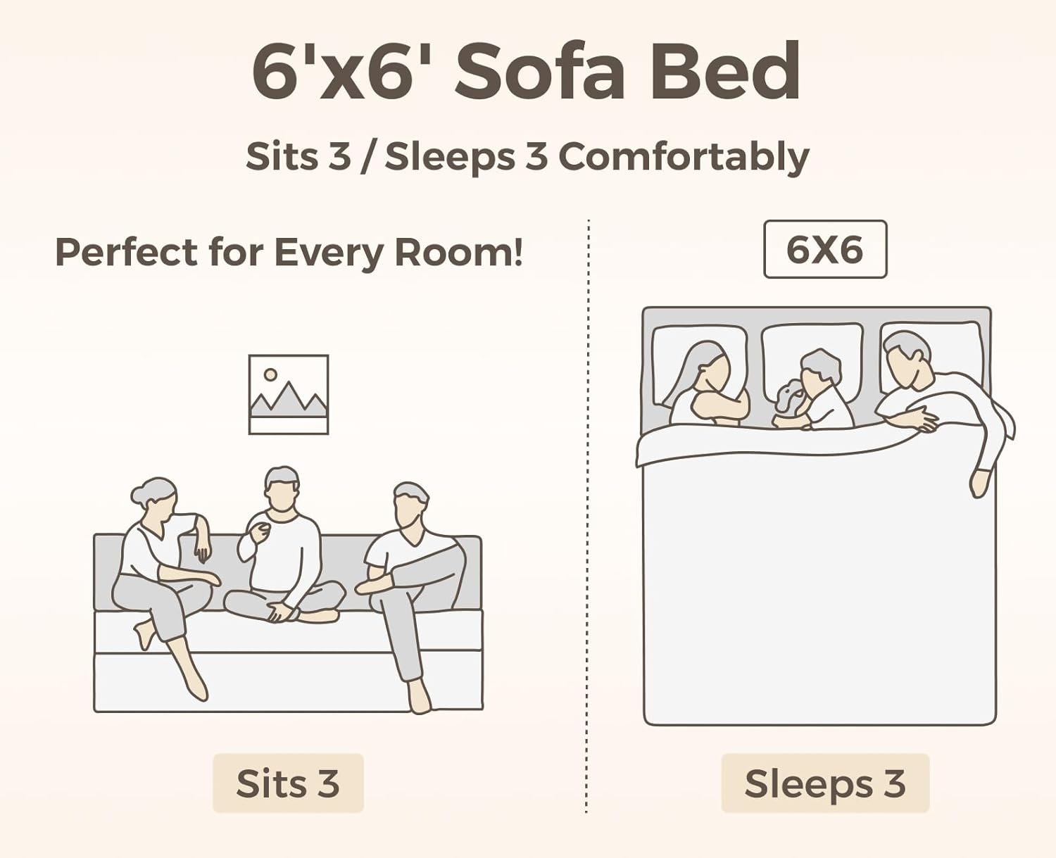 Generous Seating and Sleeping Area: With dimensions of 72″ x 70″ x 7.5″ as a bed and 70″ x 30″ x 28″ as a sofa, this product comfortably accommodates three individuals when seated and offers a spacious sleeping area comparable to a king-sized bed.