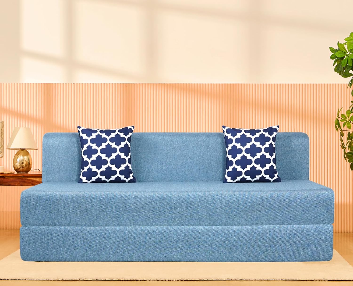 Complete Package: The package includes 1 Uberlyfe Aqua Blue Sofa cum Bed featuring a stylish Semicircle Pattern, along with 2 pillow covers and 2 fillers, providing both functionality and aesthetic appeal to your living space. , , uberlyfe , Details)