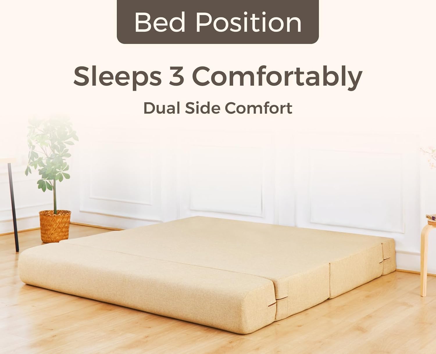 Durable and Portable: Despite its lightweight design, our sofa bed is constructed using high-quality raw materials and a 450 gsm fabric, ensuring durability and robustness to withstand daily use and movement.