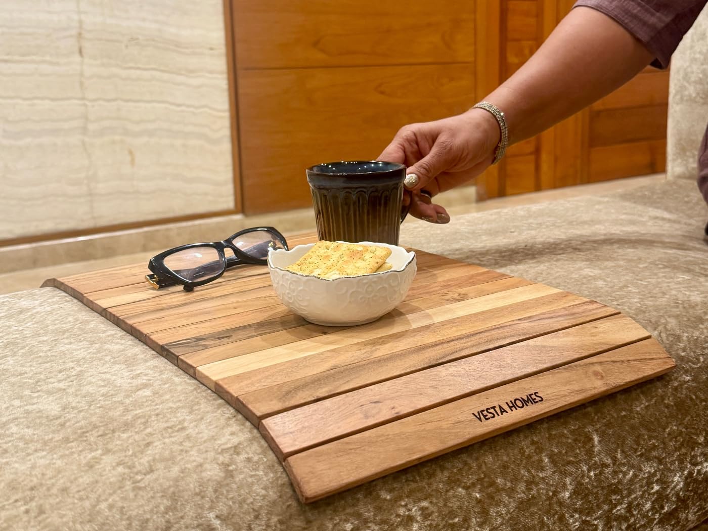 Acacia is one of the most sustainable trees. This Sofa arm tray is attractive. Our Acacia wooden sofa arm tray is pre-treated with a blend of natural oils and waxes. Acacia is harder than most other woods, with superior scratch resistance and is non-slippery. Acacia is resistant to liquid absorption. This wooden tray is less prone to cracking or warping than other woods and easy to clean. It will preserve the rich color and last years if properly maintained.