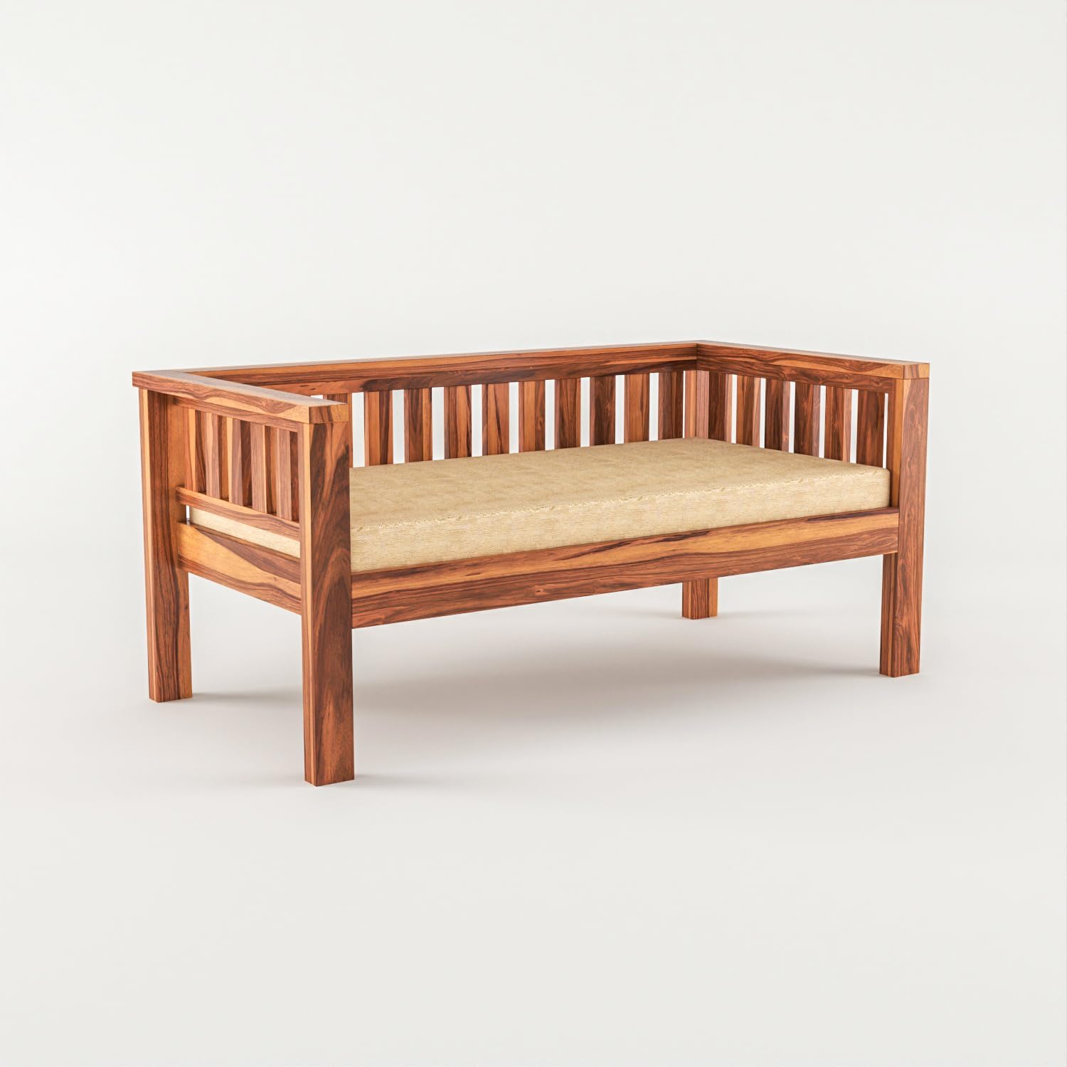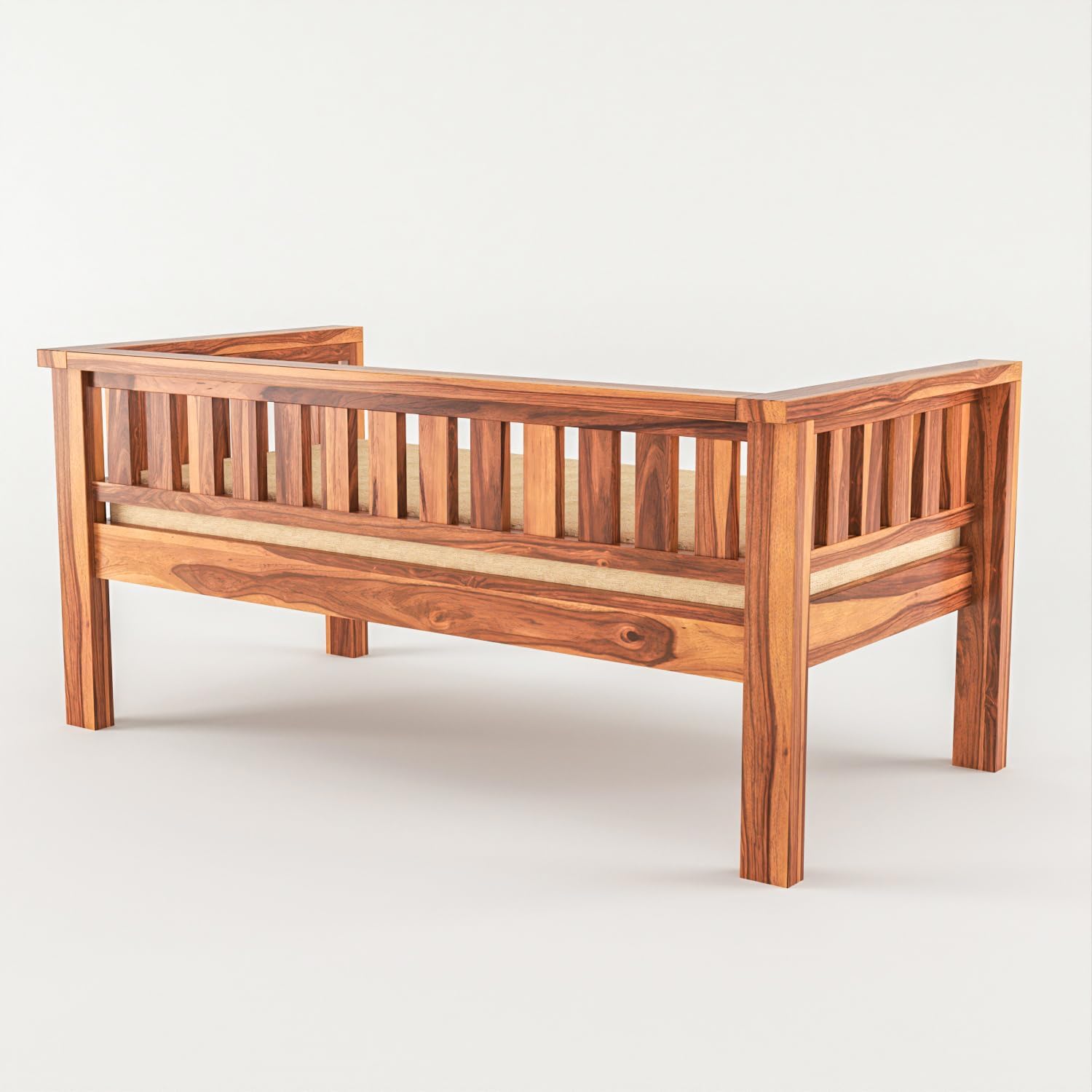 The wooden sofa cum couch is designed with a thoughtful combination of style and functionality, making it suitable for both formal and casual settings, The Rosewood finish enhances the natural beauty of the wood, giving the sofa an elegant and sophisticated look.