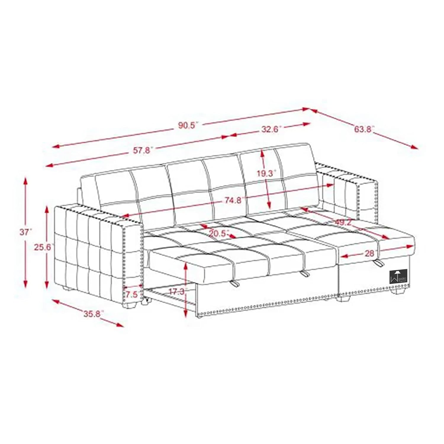 Size – 91(L) x 64.5(D) x 35.5(H) Inches