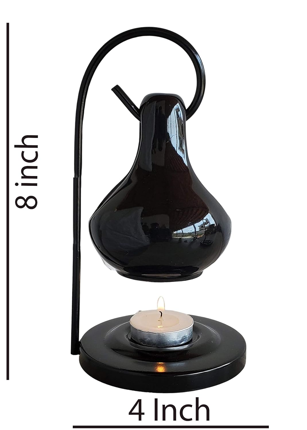 Item: Ceramic With Metal Stand Aroma Oil Burner And 1 Tea Candle; Size: 4 Inch x 8 Inch, (Color- Black)