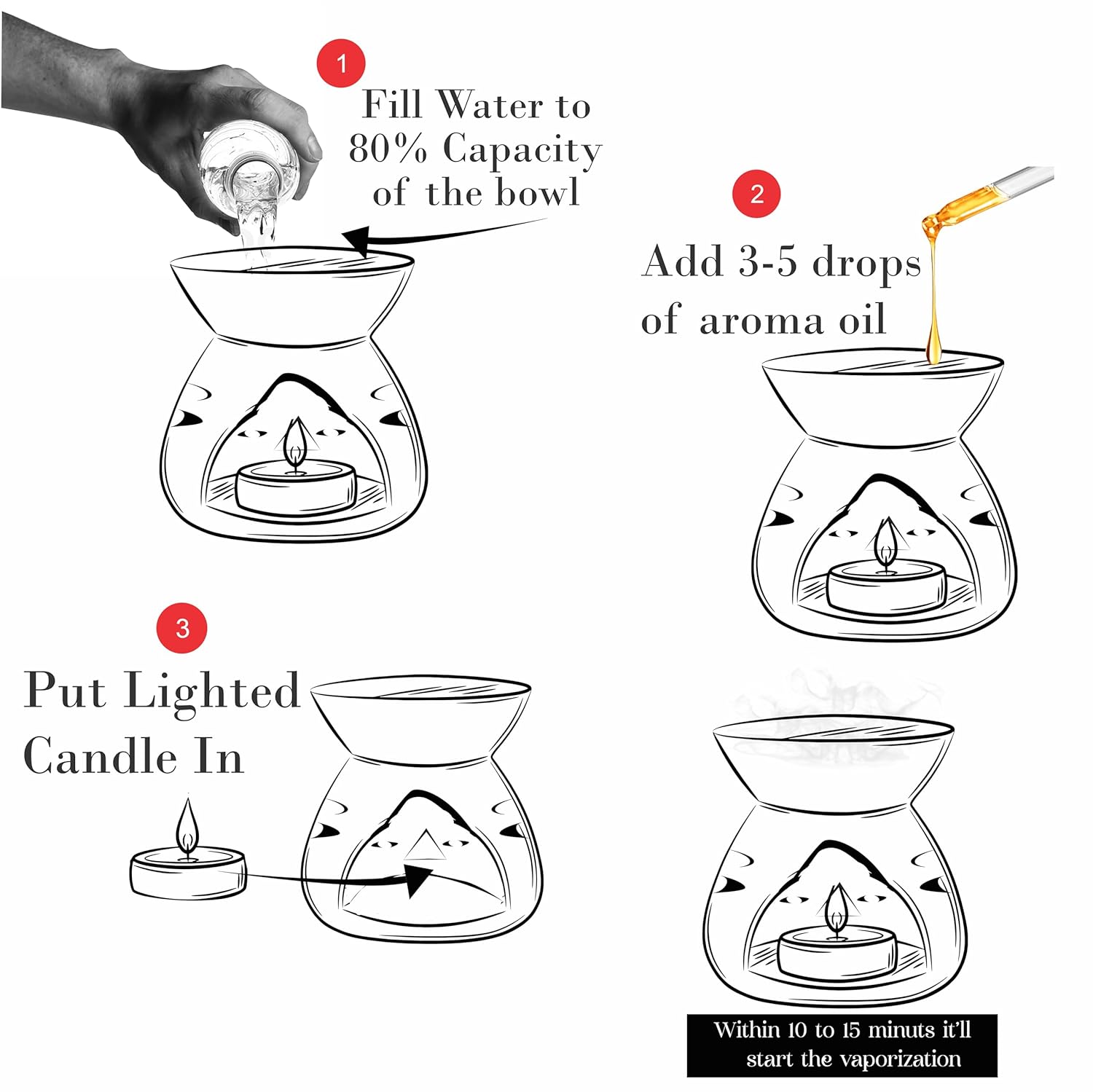 Using a tea light candle-operated aroma burner is simple and involves a few straightforward steps: