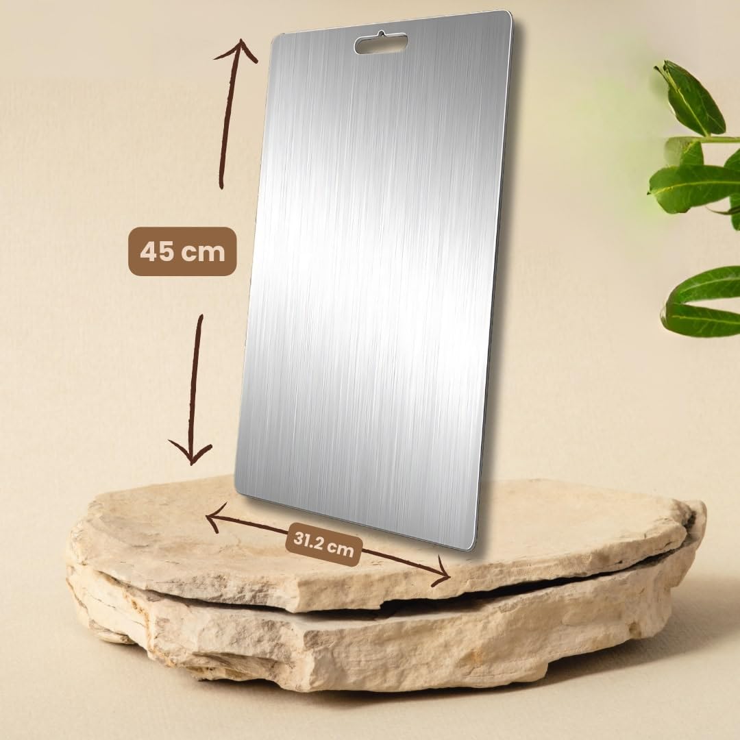 Stainless Steel chopping board for kitchen large (Extra Large 45 X 31.2 CM) Kitchen Food Grade,Stainless Steel, Cutting & Slicing Vegetable Chopper Board with Anti Skid Silicon Platform Countertop Pad
